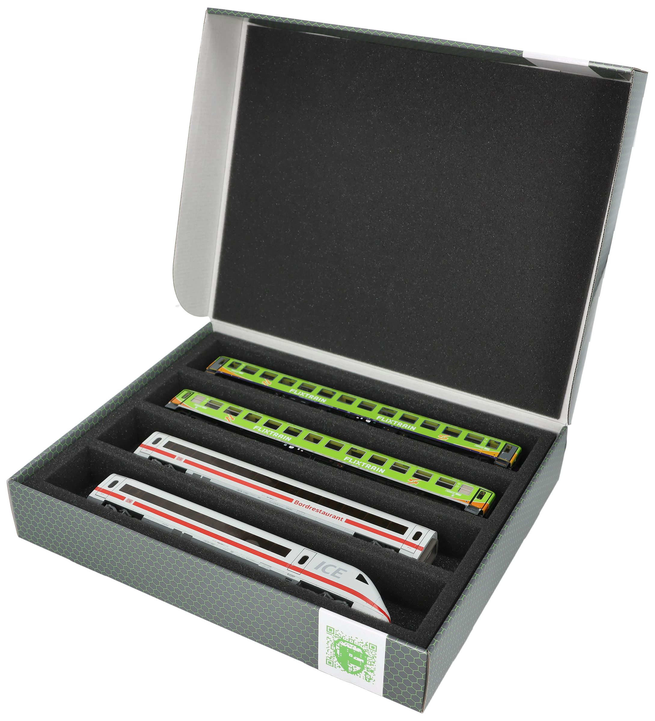 Several trains and carriages can be stored next to each other in one compartment. In order to prevent collision or unintentional coupling, we offer suitable foam spacers (HS040A002, HS020A001) to separate your vehicles.