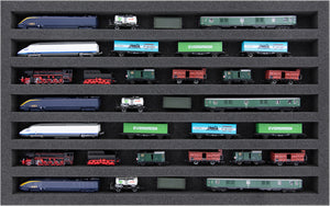 Feldherr Storage Box FSLB040 for model railway locomotives, wagons and vehicles - 9 slots for Z gauge horizontal