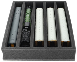 Feldherr Storage Box FSLB075 for model railway locomotives, wagons and vehicles - 5 slots for H0 gauge vertical