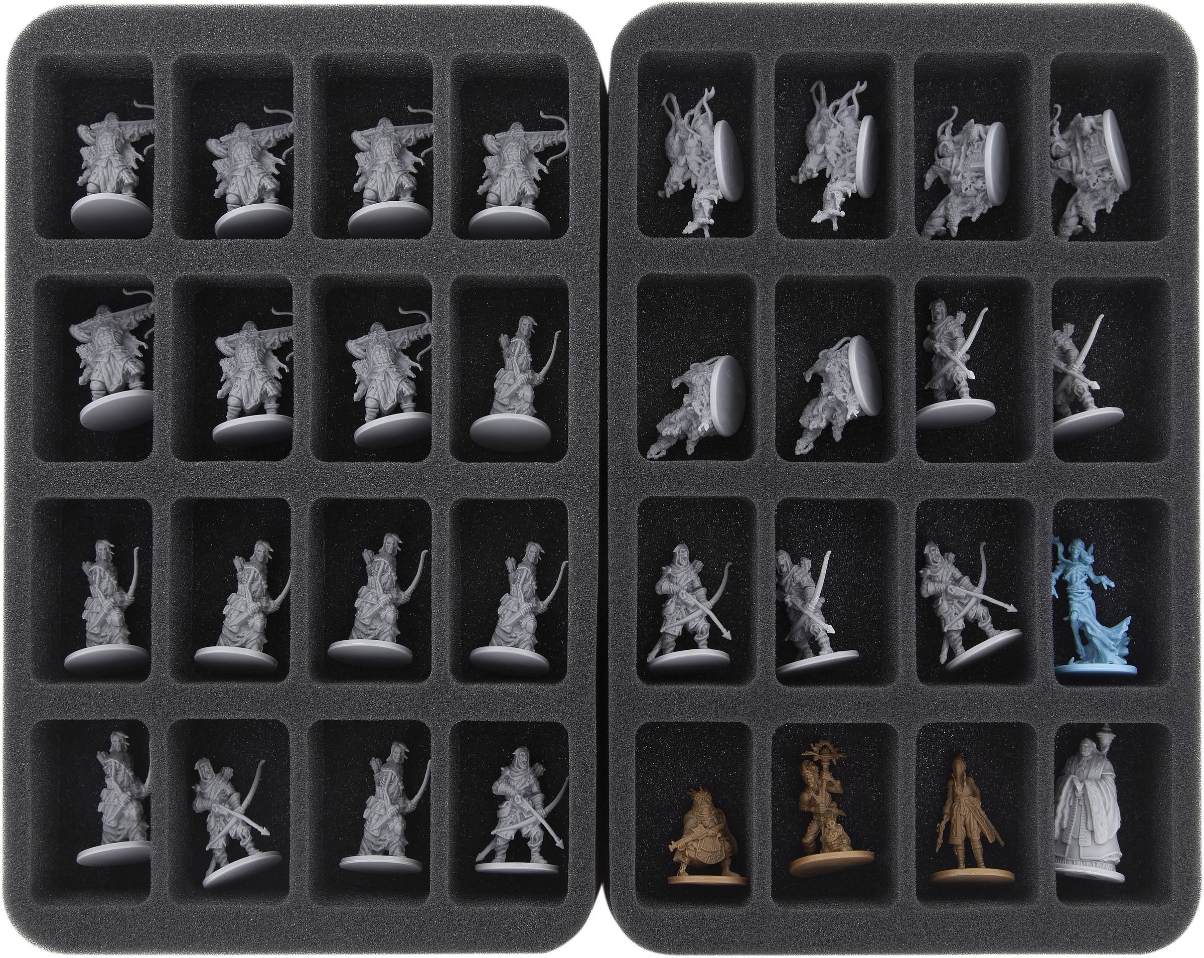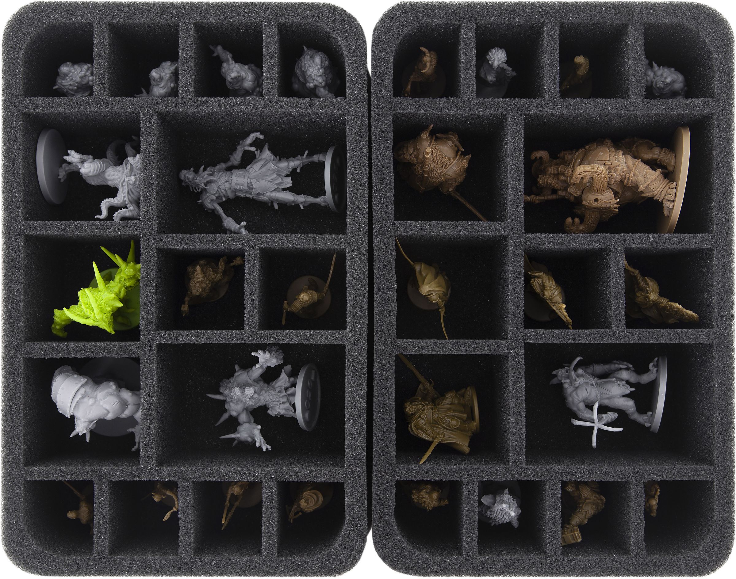 - 2 Half-Size foam trays each with 16 compartments for miniatures (HS035BF05BO)