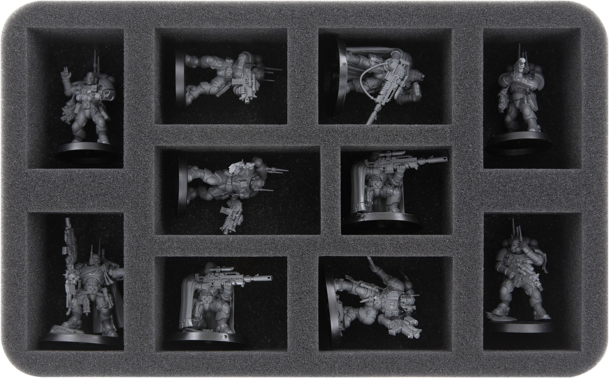 For the remaining brothers of your troop, like the Captain, Lieutenant, the Chaplain and the ten Assault Intercessors, there is the right place for each miniature on the two foam inserts each with 10 compartments (HSLM050BO).
