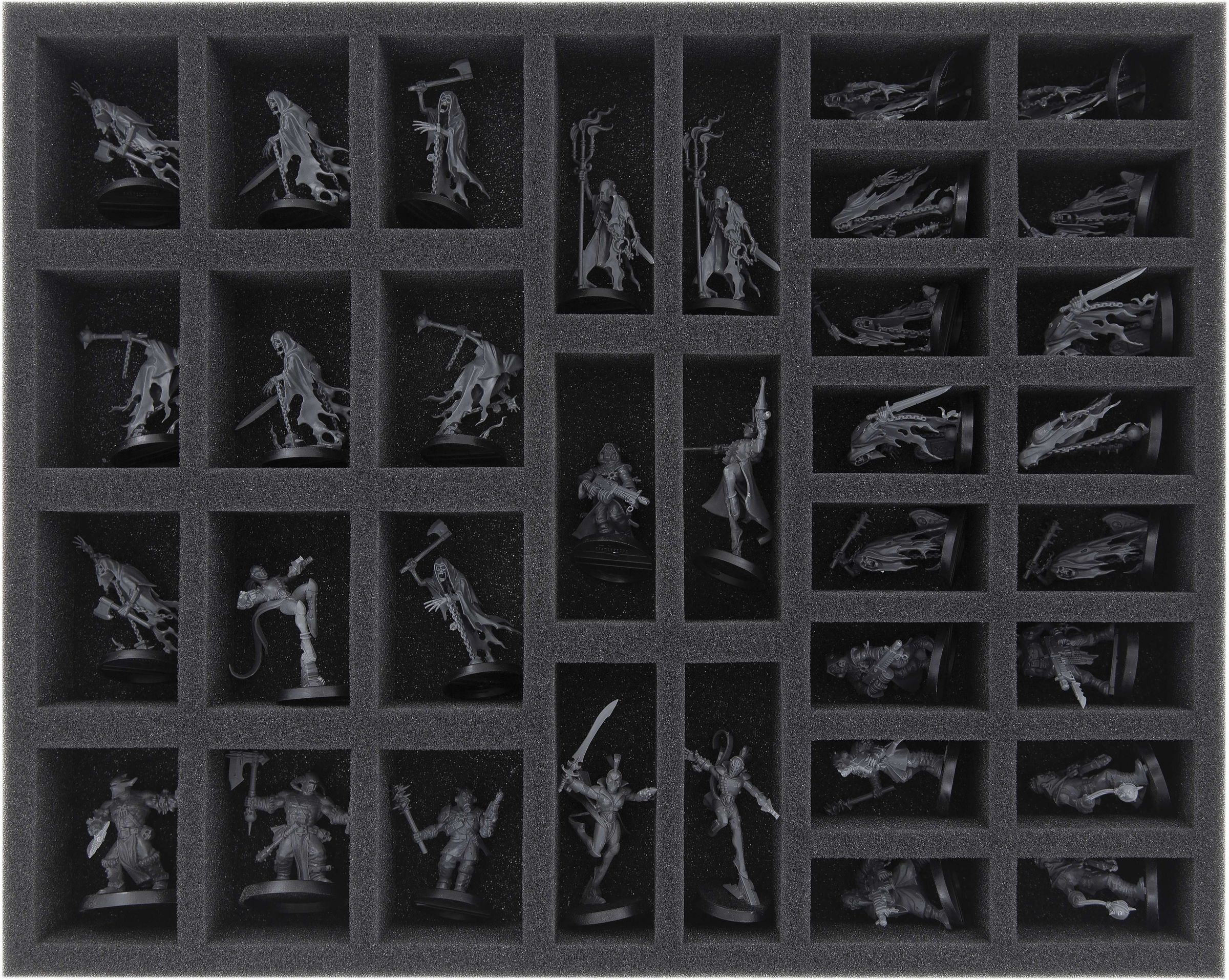 Whether it is their leader Knight of Shrouds on his skeleton horse Ethereal Steed, Lord Executioner with gallows and greataxe or the filigree worked Chainrasp Horde, all these miniatures should be stored and transported with care. So it's good to have a foam set like this.