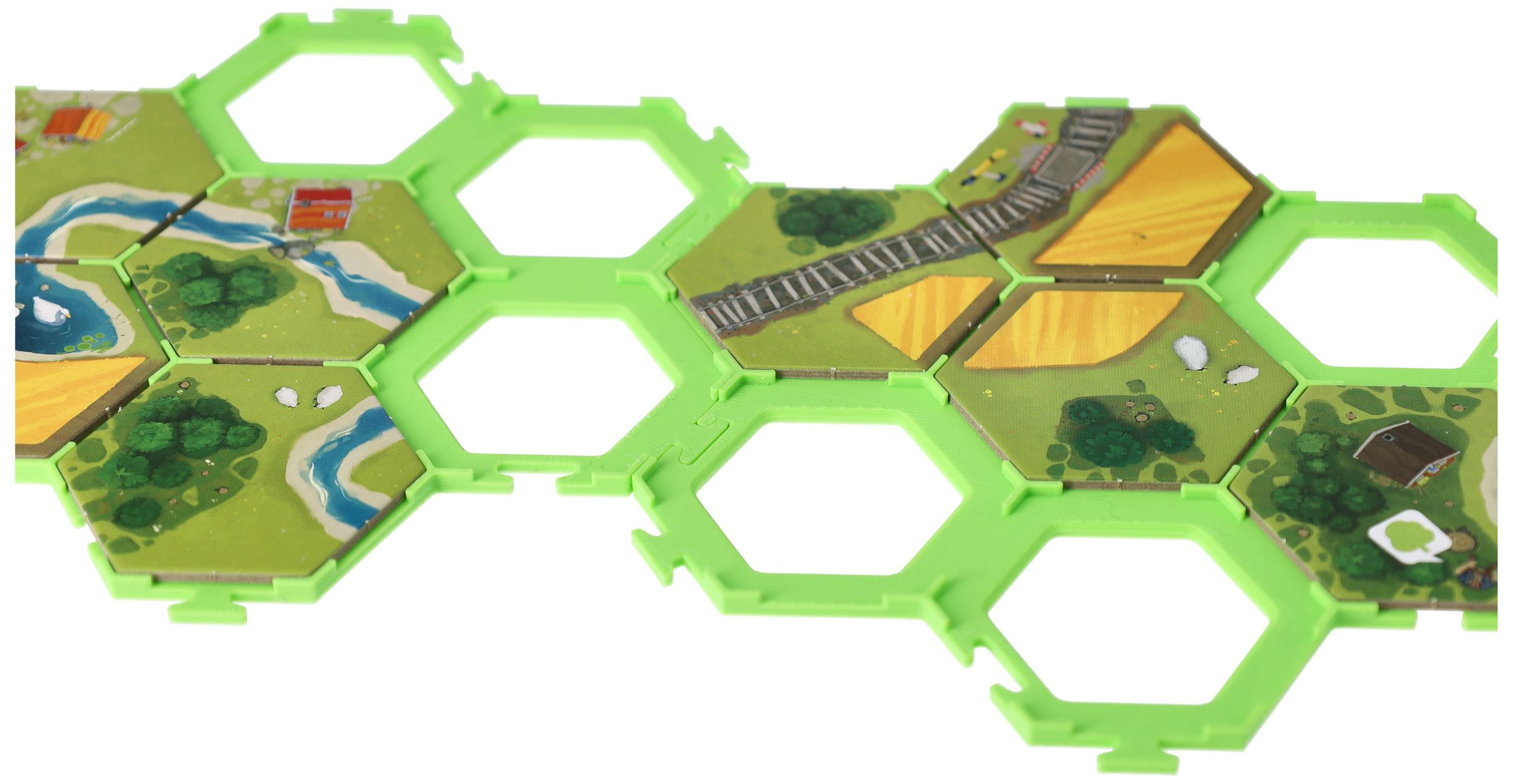 • They prevent the hexagonal landscape tiles from slipping on the tabletop and keeps the playing field together