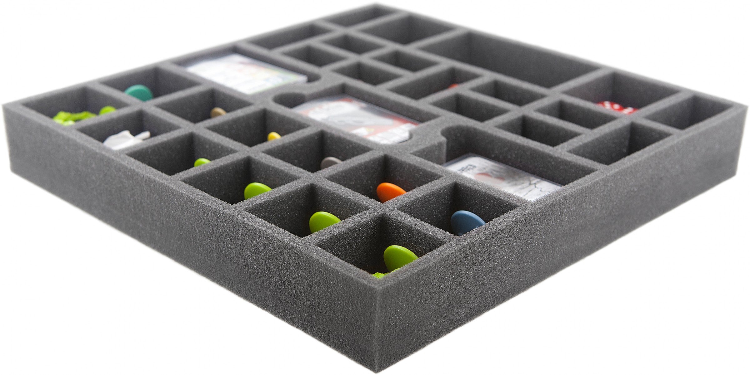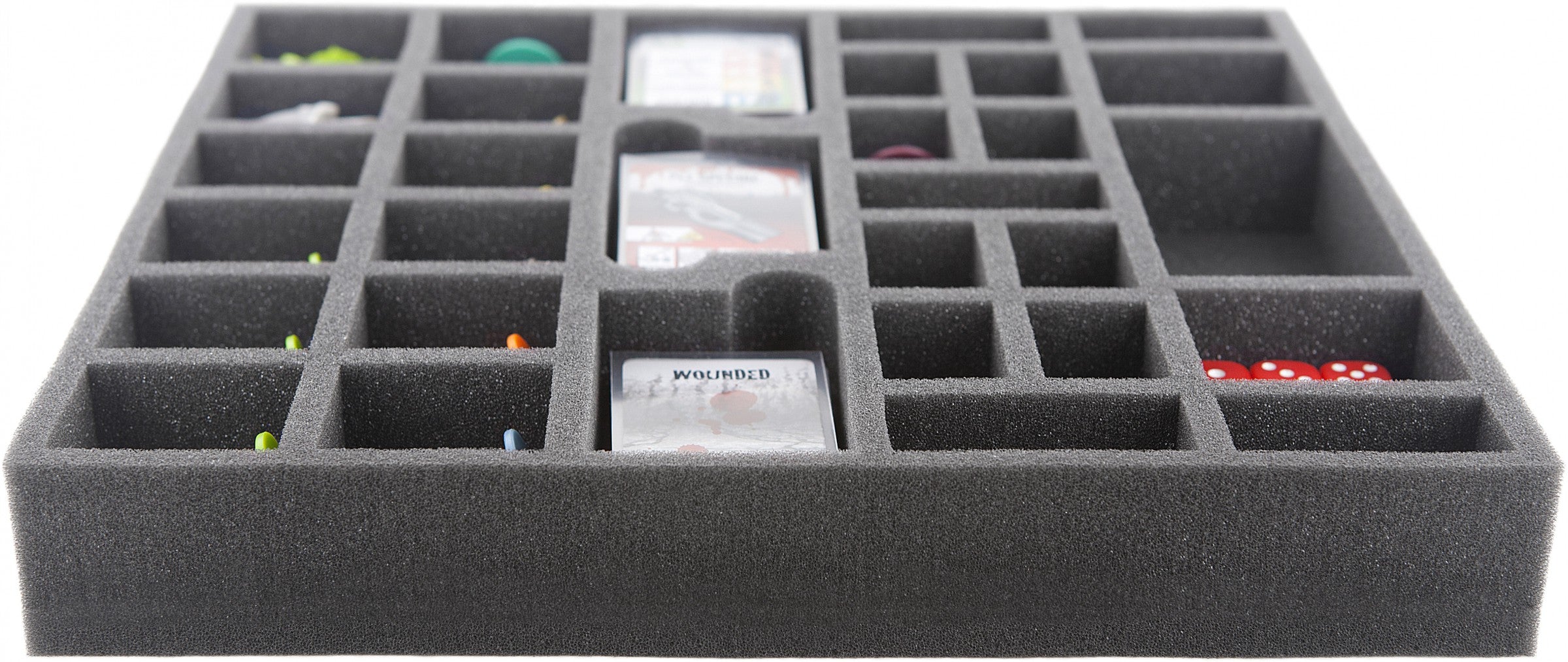 • 2 Fächer für Spielfiguren / Survivor auf 25 mm Base Fachgröße 54 mm x 26 mm x 31 mm Höhe