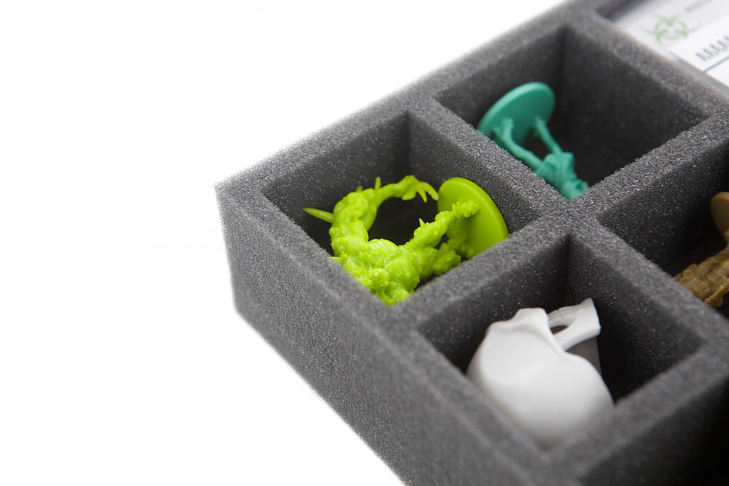 Speziell für die Zombicide Toxic City Mall Box geschnittene Einlage. Die Schaumstoffeinlage für die Brettspielbox Zombicide Toxic City Mall bietet folgende Fächer: