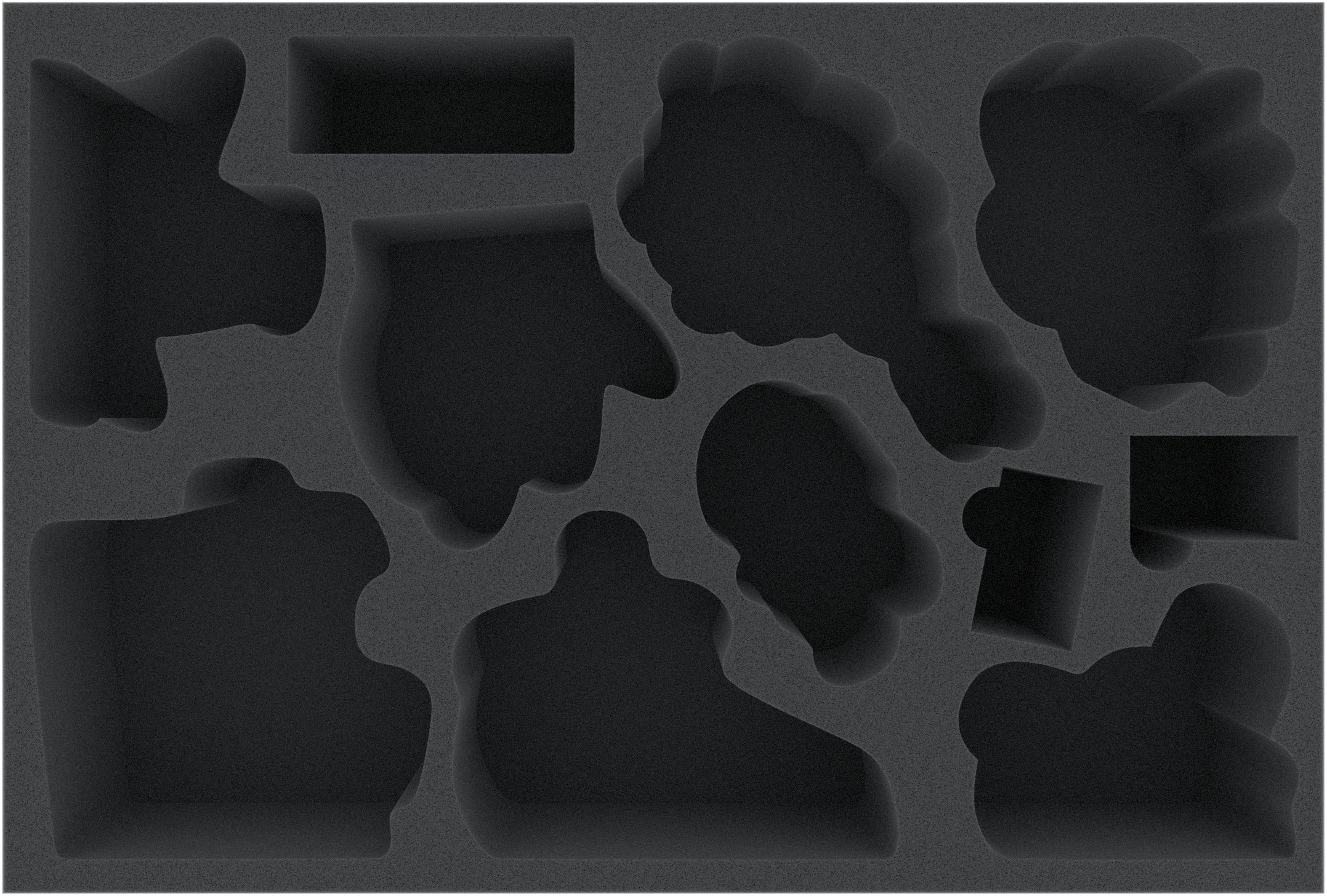 A 85 mm high tray has 9 compartments that are individually tailored to the miniatures.