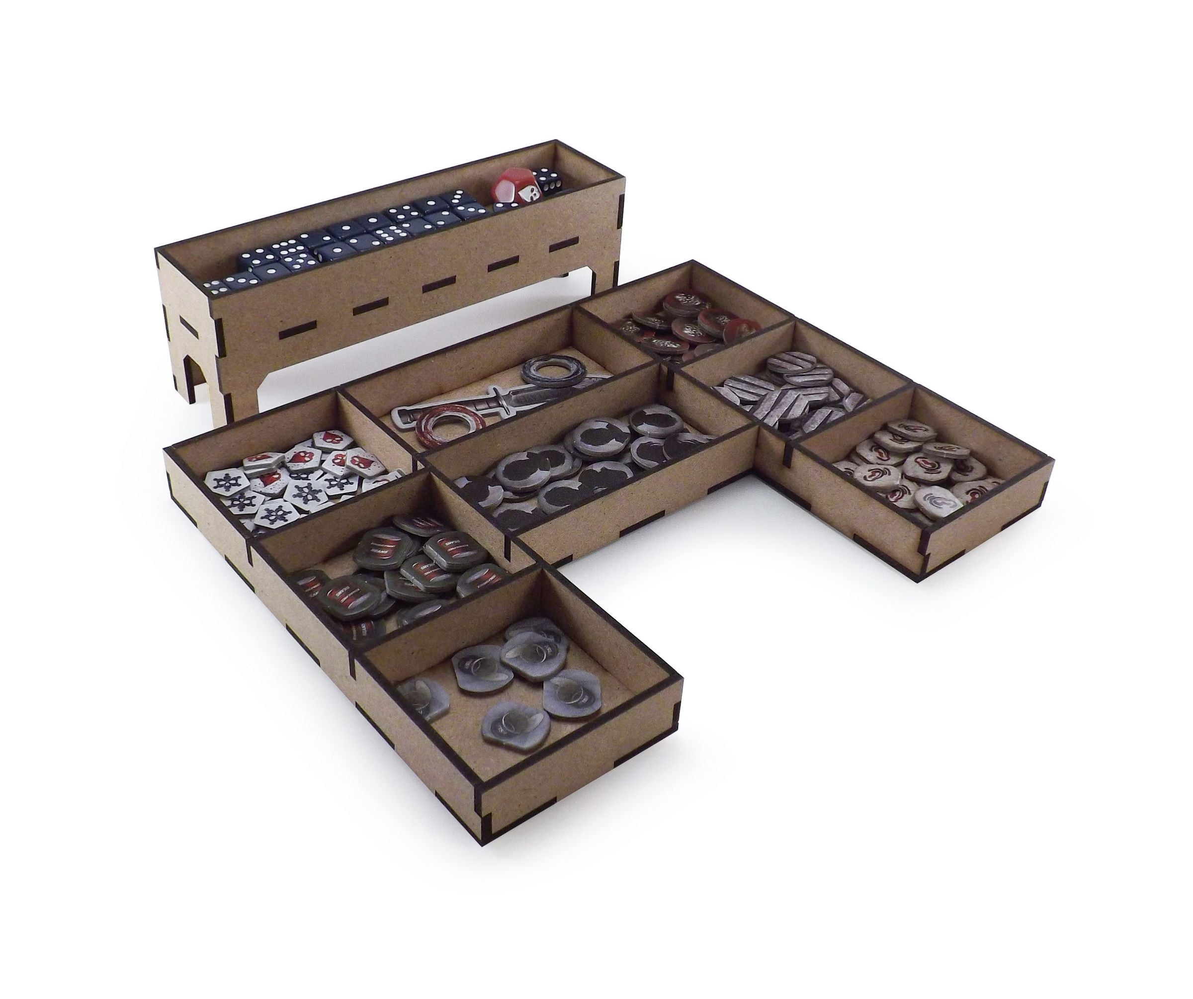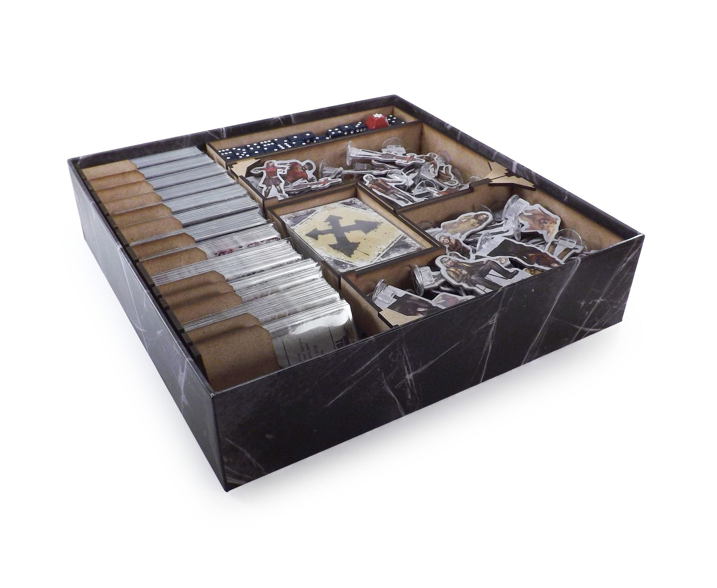 After zombies have overrun the world, survivors can only trust in each other and search cold and abandoned places for supplies. Literally hundreds of cards and tokens help this world to spring to life. Our insert gives all of them a dedicated space and creates some order in the colony.