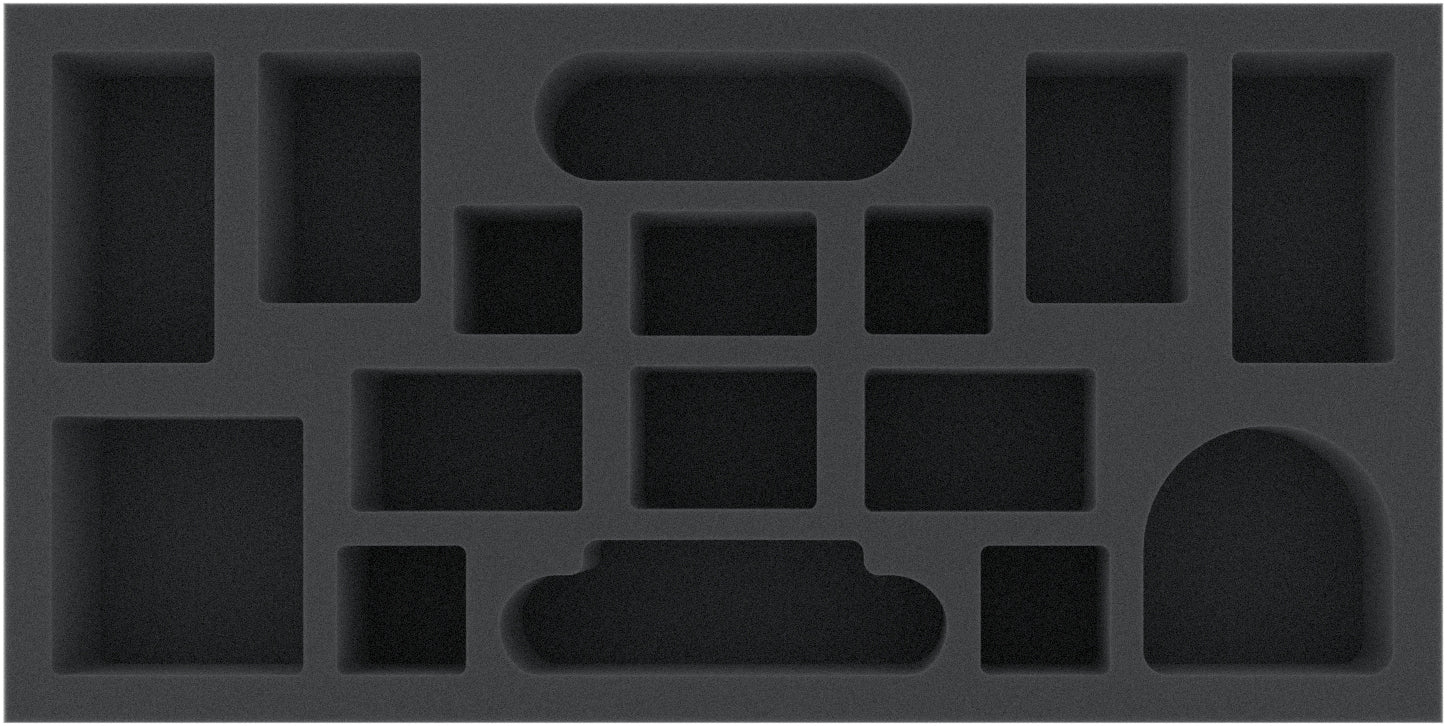 This foam tray is divided into 24 compartments of different sizes. It is particularly suitable for the safe storage of miniatures from various board games. The insert can also be used for sorting accessories like tokens.