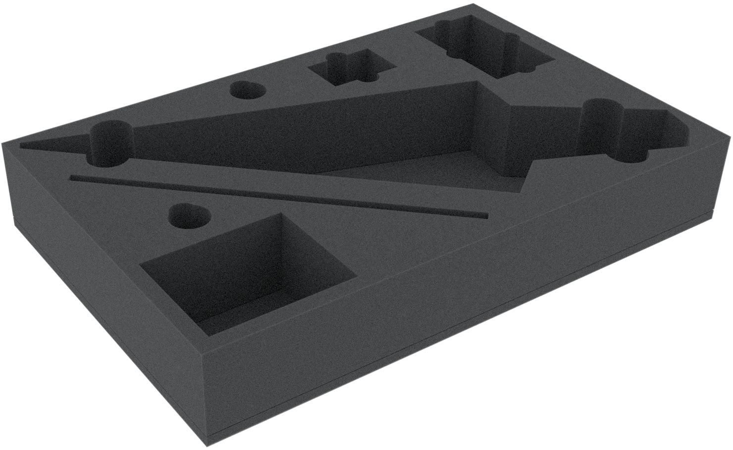 The foam tray has the dimensions: 565 mm x 365 mm x 90 mm total height (80 mm usable height + 10 mm foam base).