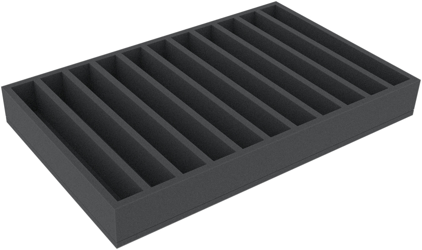 The Double-Size foam tray has the dimensions: 550 mm x 345 mm x 65 mm total height (55 mm usable height + 10 mm foam base).
