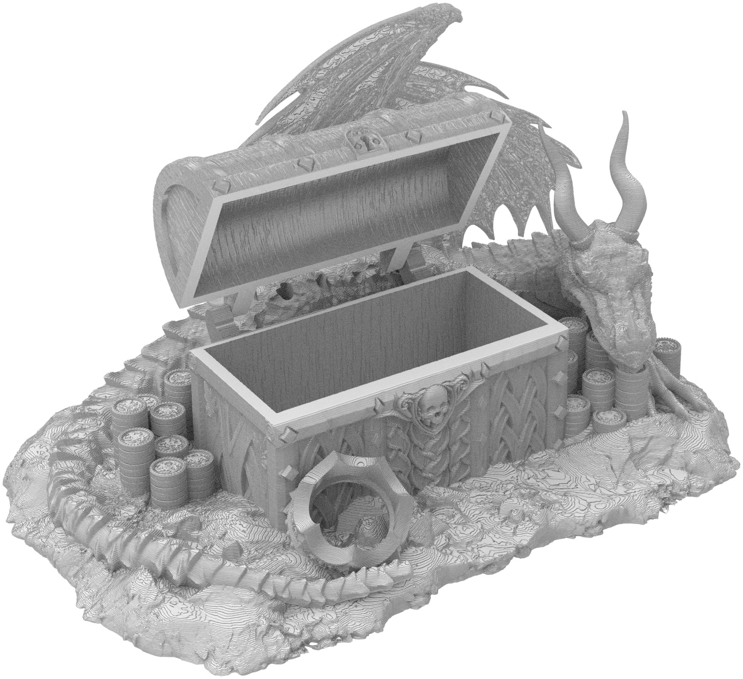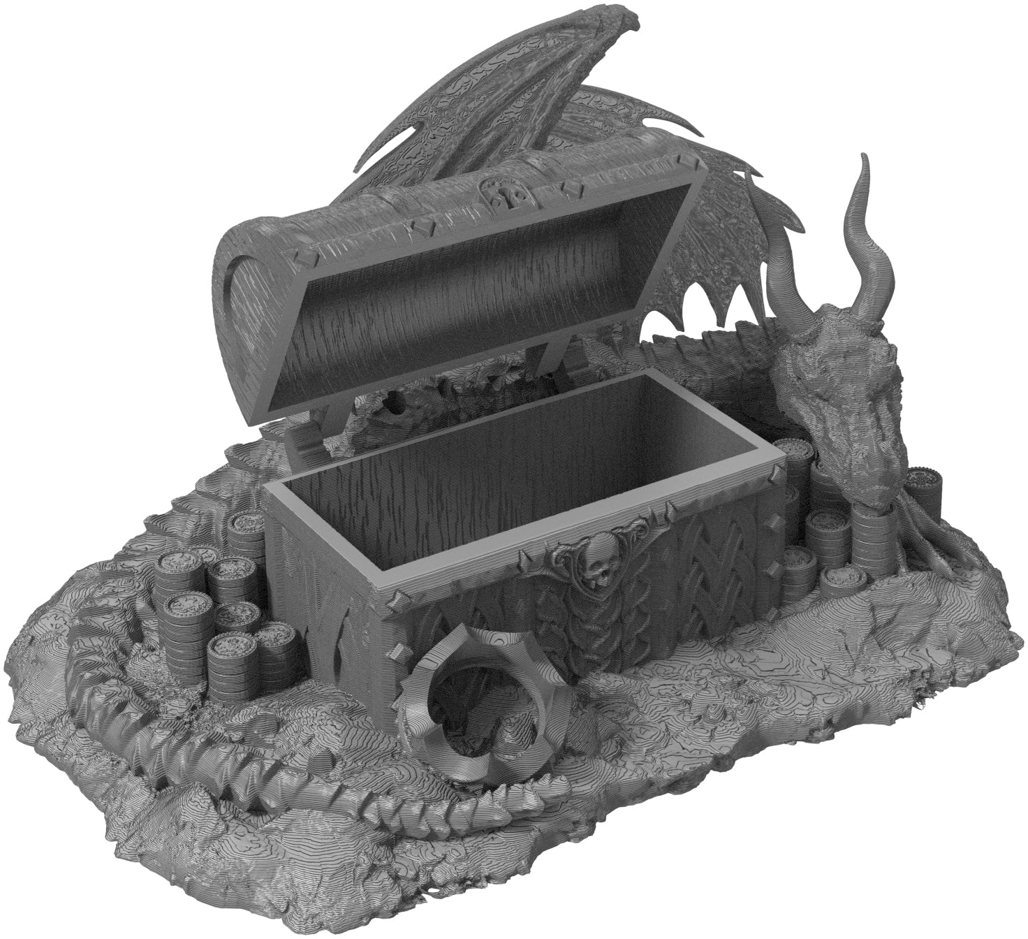 3D printed - detailed dice jail. The Dice Jail can also be used as a terrain part for your miniatures game or as a center piece for your next DnD session.
