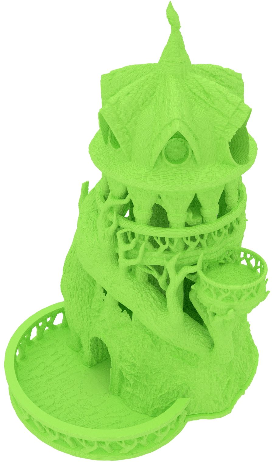 3D printed - detailed dice tower, with removable roof and exchangeable dice tray. The Dice Tower can also be used as a terrain part for your miniatures game or as a center piece for your next DnD session.