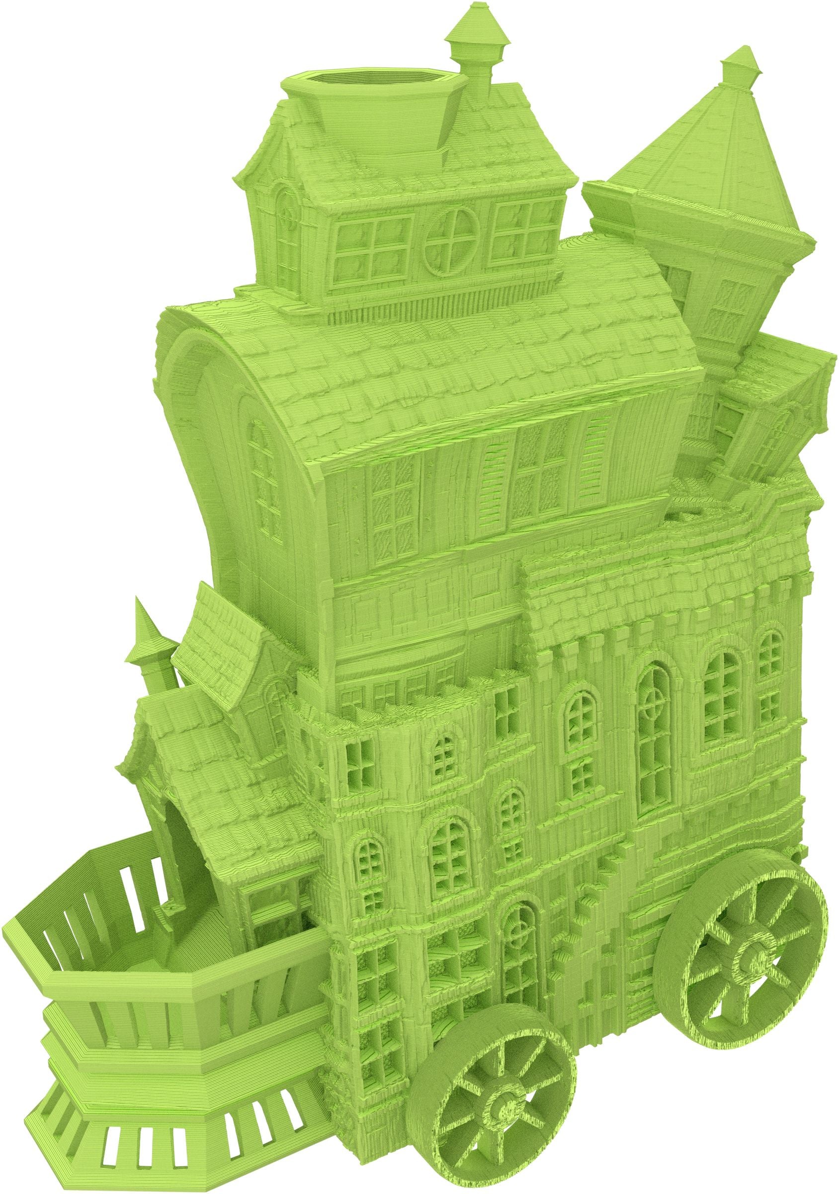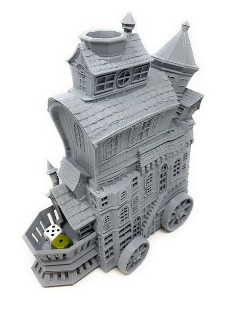 3D printed - detailed dice tower, with removable roof and exchangeable dice tray. The Dice Tower can also be used as a terrain part for your miniatures game or as a center piece for your next DnD session.