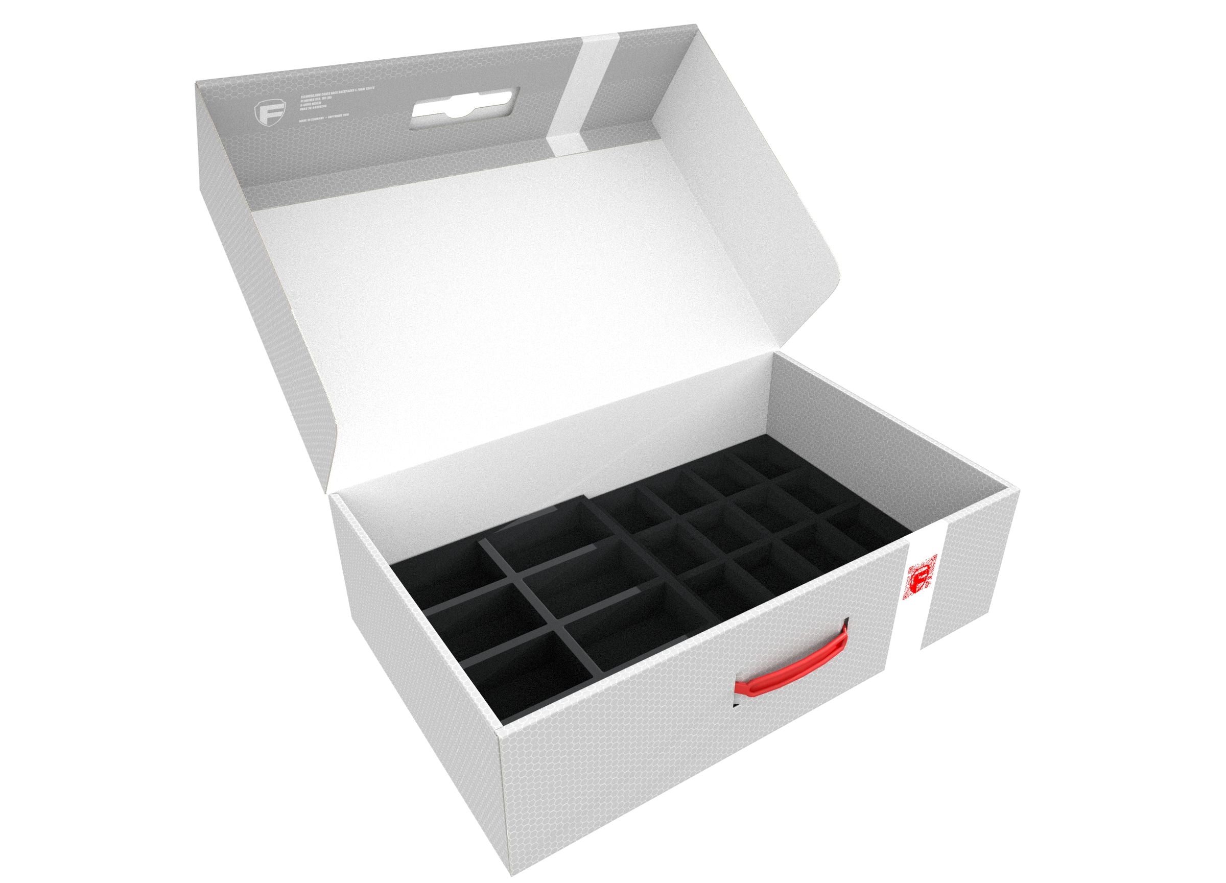 - 1 foam tray with 16 compartments for small miniatures (FSMEFP040BO)