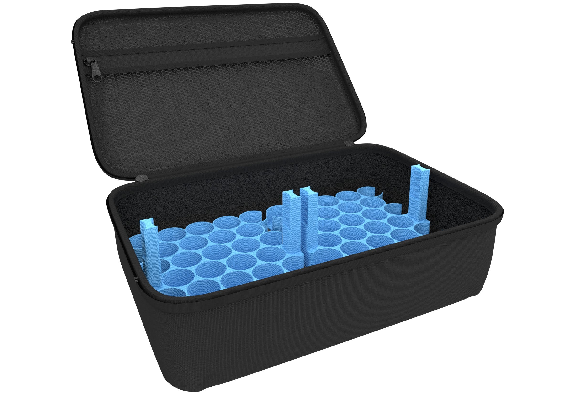 The two color holders are perfectly stored in the sturdy Half-Size Case 90. The practical handle in the middle makes it easy to take the racks out. Two foam mats serve as an additional base and as a topper.