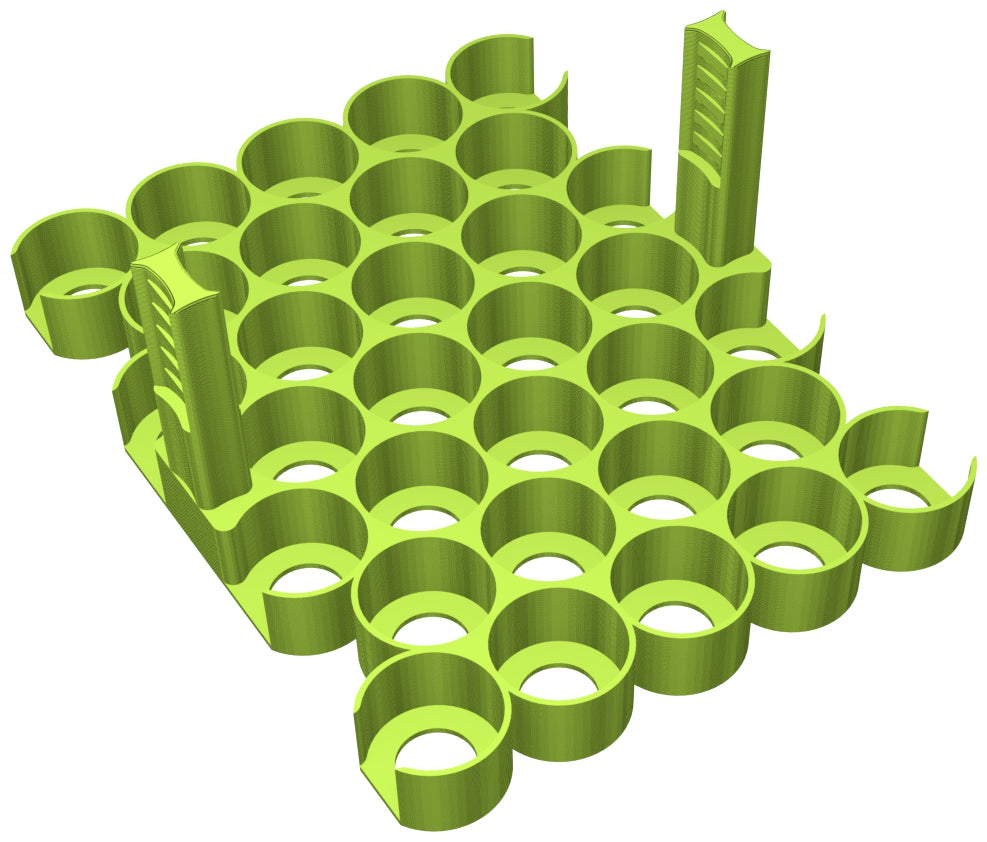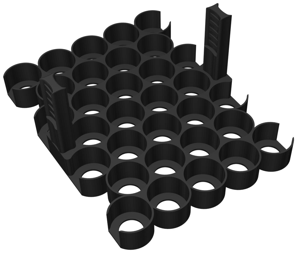The Feldherr paint holder is ideal for stowing 17 ml model color bottles from Vallejo, 18 ml Warpaint bottles from Army Painter and similar sized paint bottles.