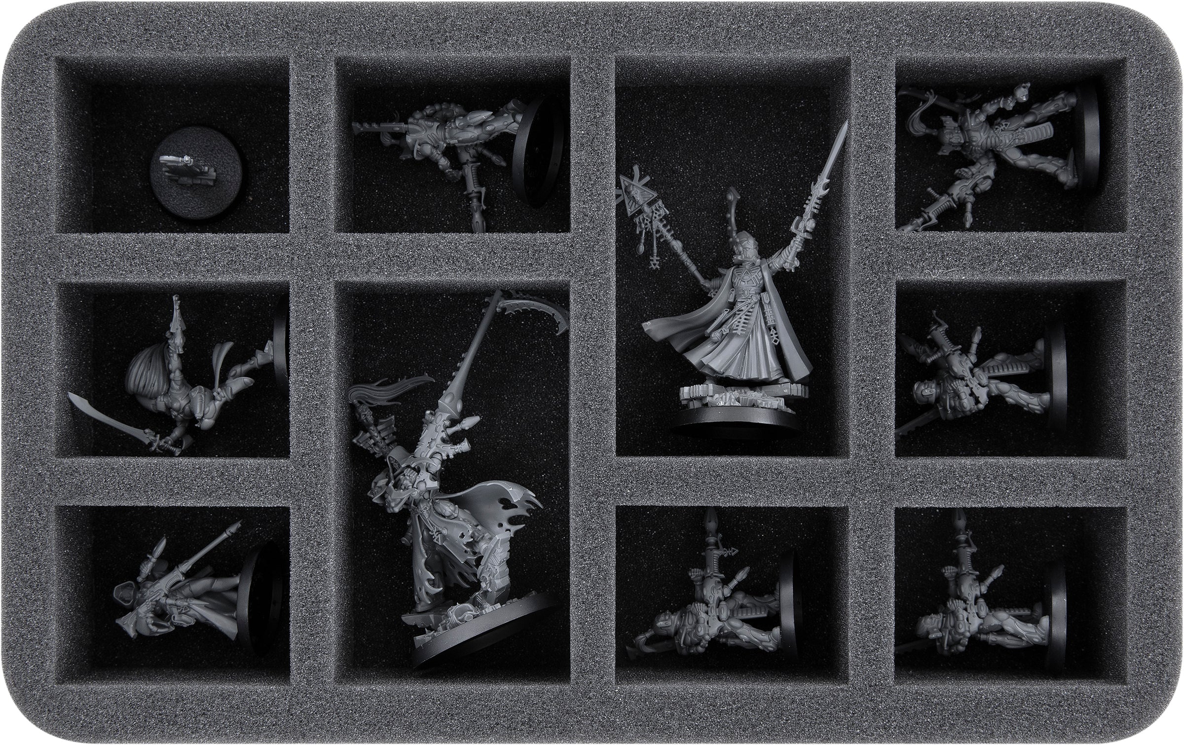 - 1 Half-Size foam tray with 10 compartments for expansive infantry models such as Dark Reapers, Rangers, character models such as Maugan Ra, Eldrad Ulthran and models with similar dimensions (HS050A098)
