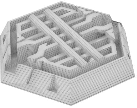 The customized hexagonal plastic base is designed with industrial sites in mind. Besides the grid floor, it offers additional industrial details on the edges for more immersion. Ideal for game systems that require hexagonal bases, such as Battletech.