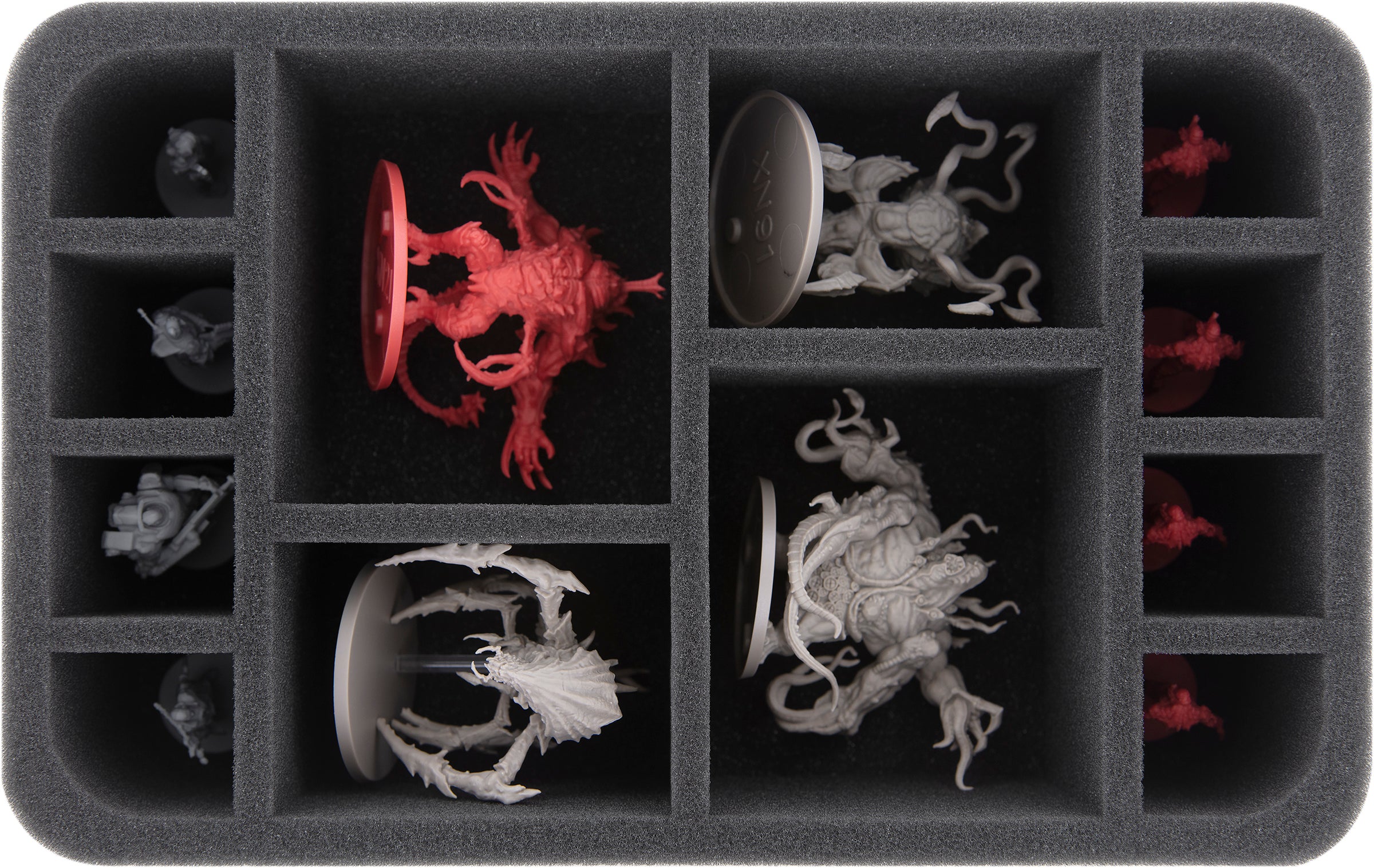 Thus, your figures stay in place even during transport, do not slide around and are optimally protected from damage by the soft foam. The tentacles and claws of the Xenos remain here just as unharmed as the weapons of your heroes.