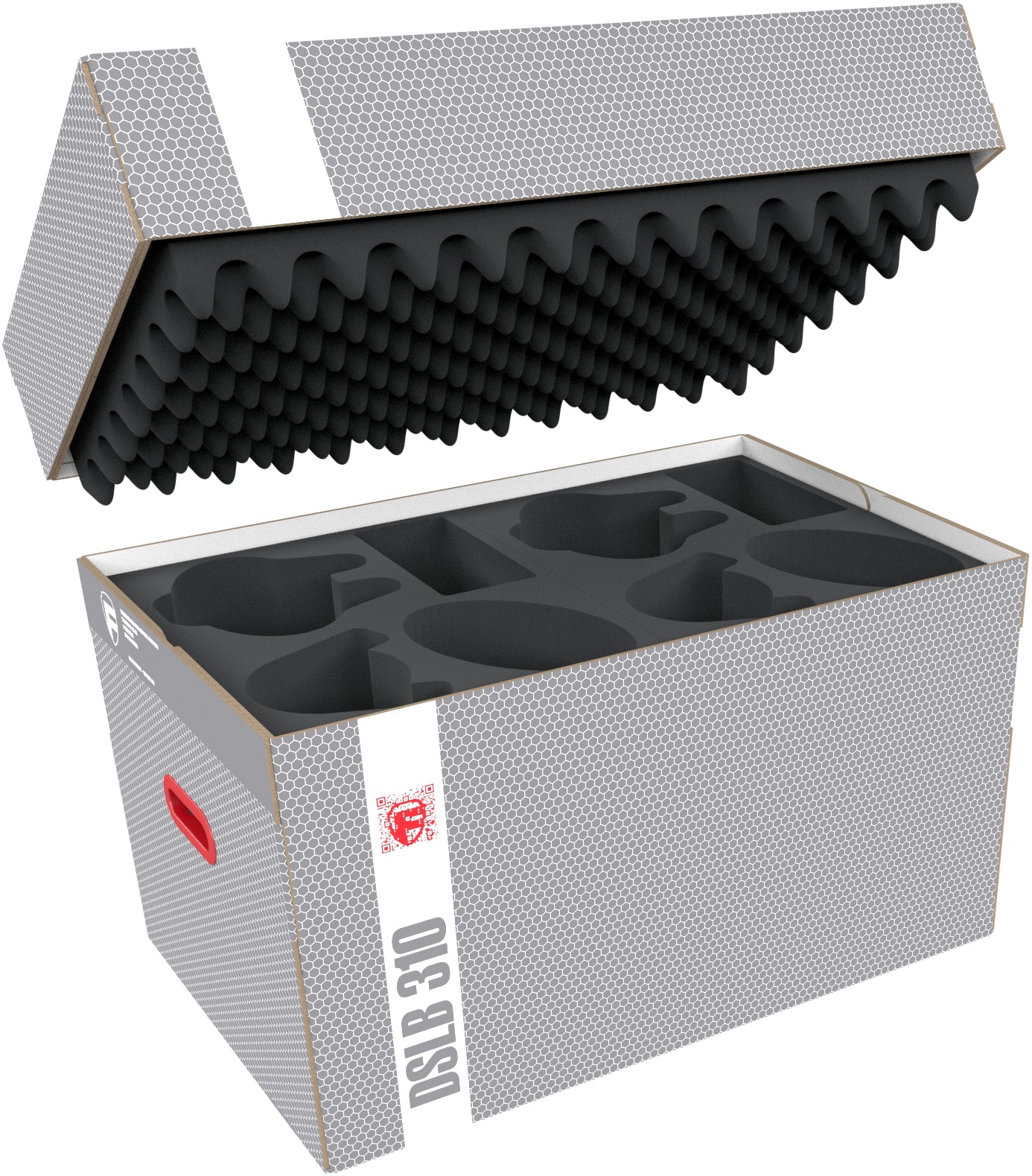 The Storage Box DSLB310 is made of coated, double-walled cardboard. This makes it not only pleasantly light, but also very tear-resistant and stable. The attachable lid reliably protects the contents from dust and other external influences. With the appropriate foam trays, miniatures, game material, and all other goods can d be stored safely - and conveniently transported with the two plastic-reinforced carrying handles on the sides.