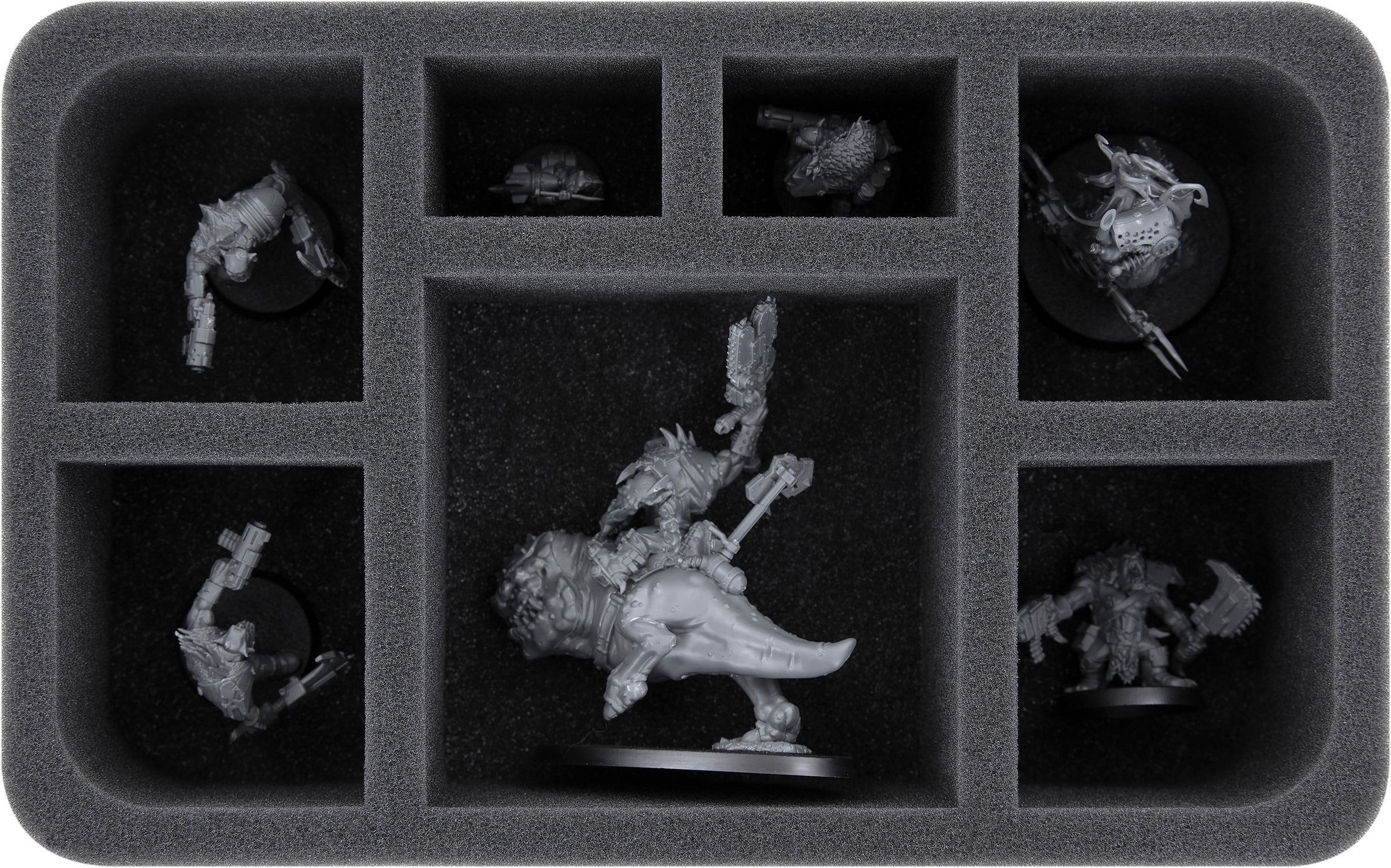- 1 Half-Size foam tray with 6 compartments for e.g. Squighog Boyz, Big Mek with Shokk Attack Gun, Big Mek in Mega Armour (HS060A050)