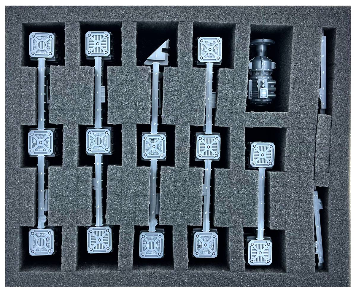 This set provides enough prefabricated foam compartments to protect other terrain pieces and miniatures. Whether it's a dashing figure of one of the many 40k armies or a simple airlock, each miniature gets its own compartment.