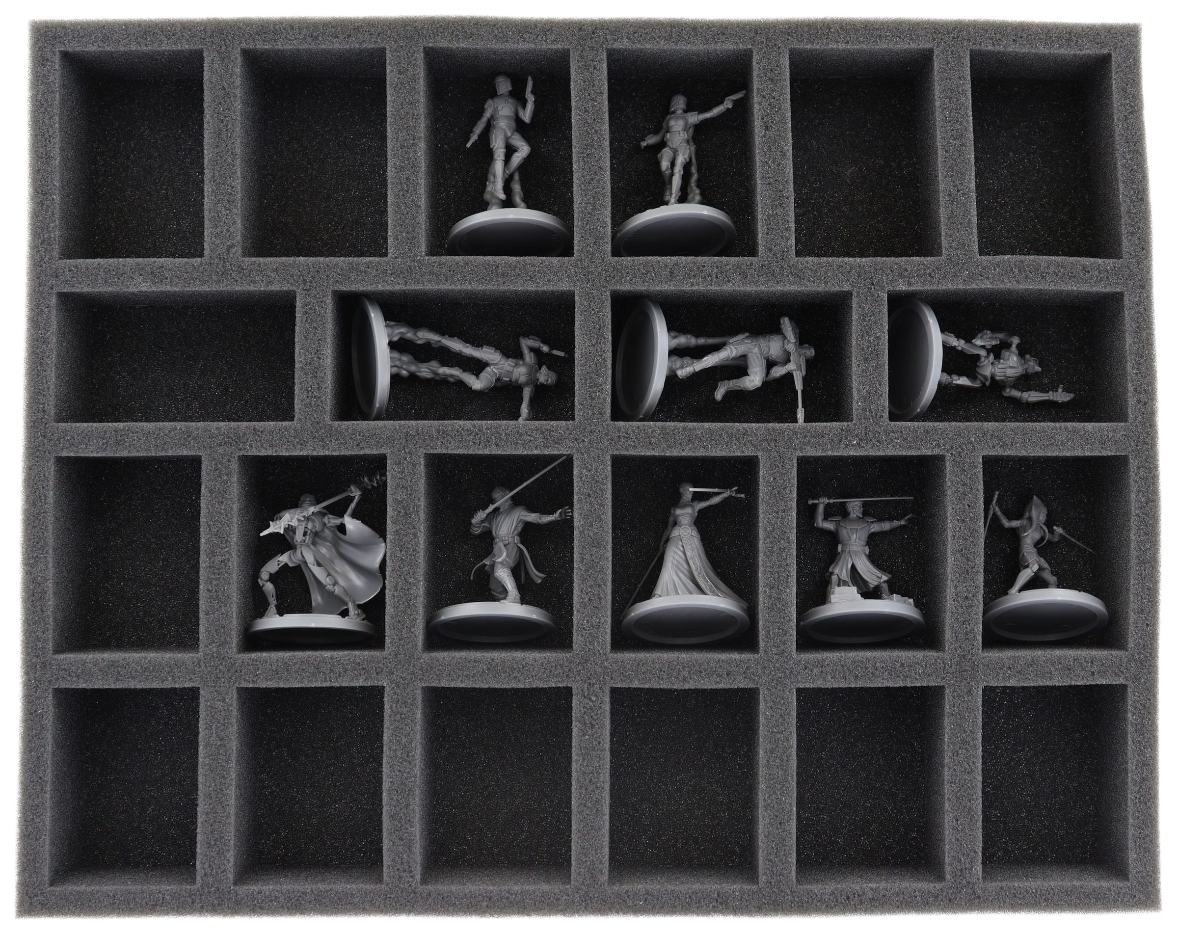 - 1 Full-Size foam tray with 22 compartments for bulky miniatures on 40 mm bases like Anakin Skywalker, Asajj Ventress, Battle Droids, and models with similar dimensions (FS050A112)
