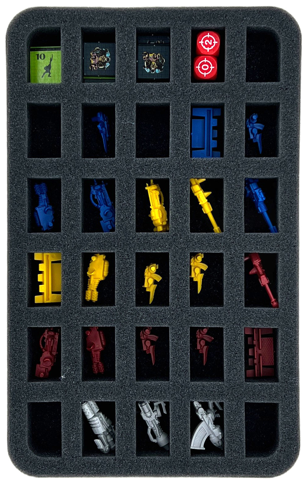 To protect your miniatures, various weapon options, and to sort your game materials, you have a total of three custom foam inserts.