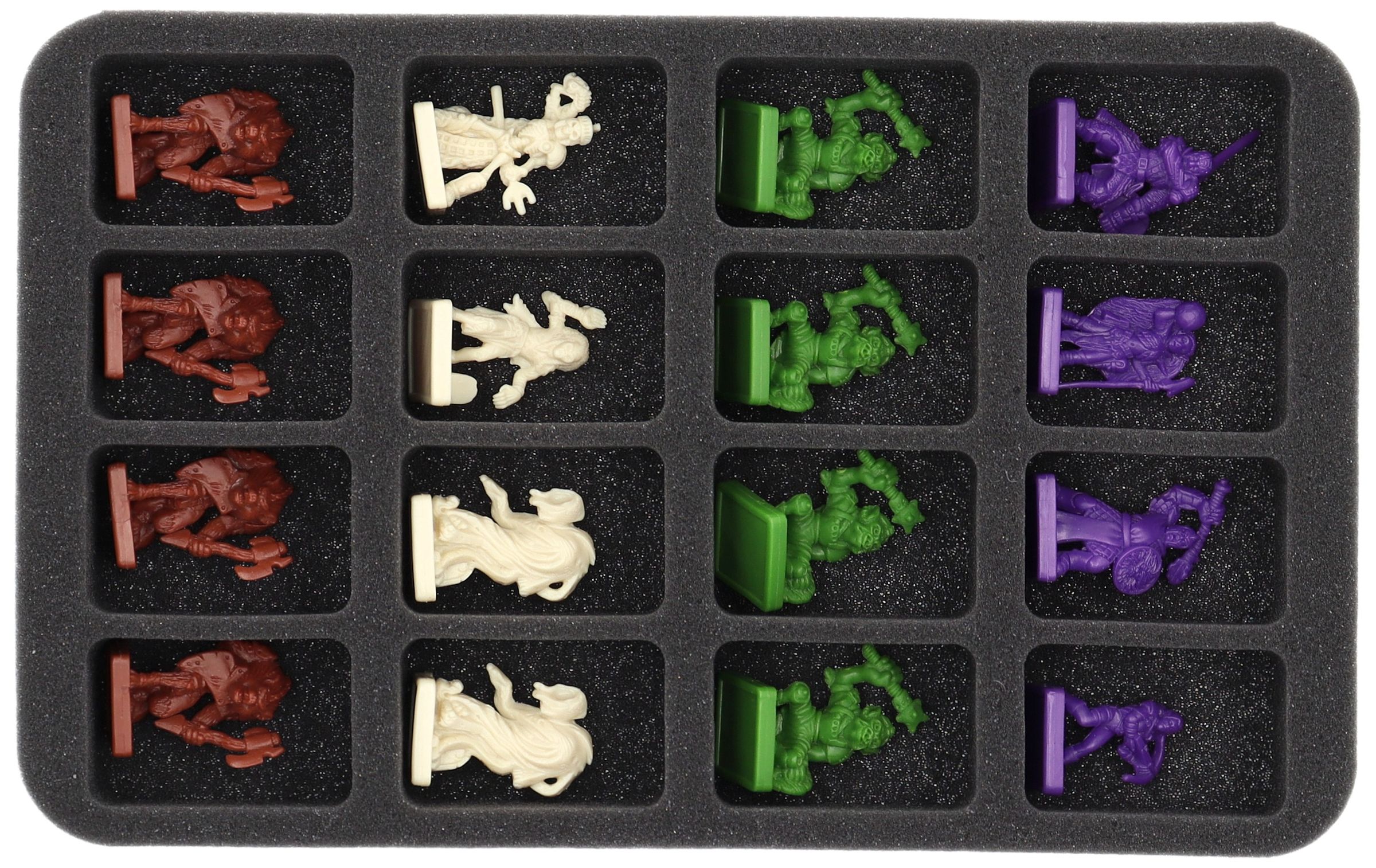 - 1 Half-Size foam tray with 16 compartments for miniatures like monsters, heroes and miniatures with similar dimensions (HS040BF05BO)