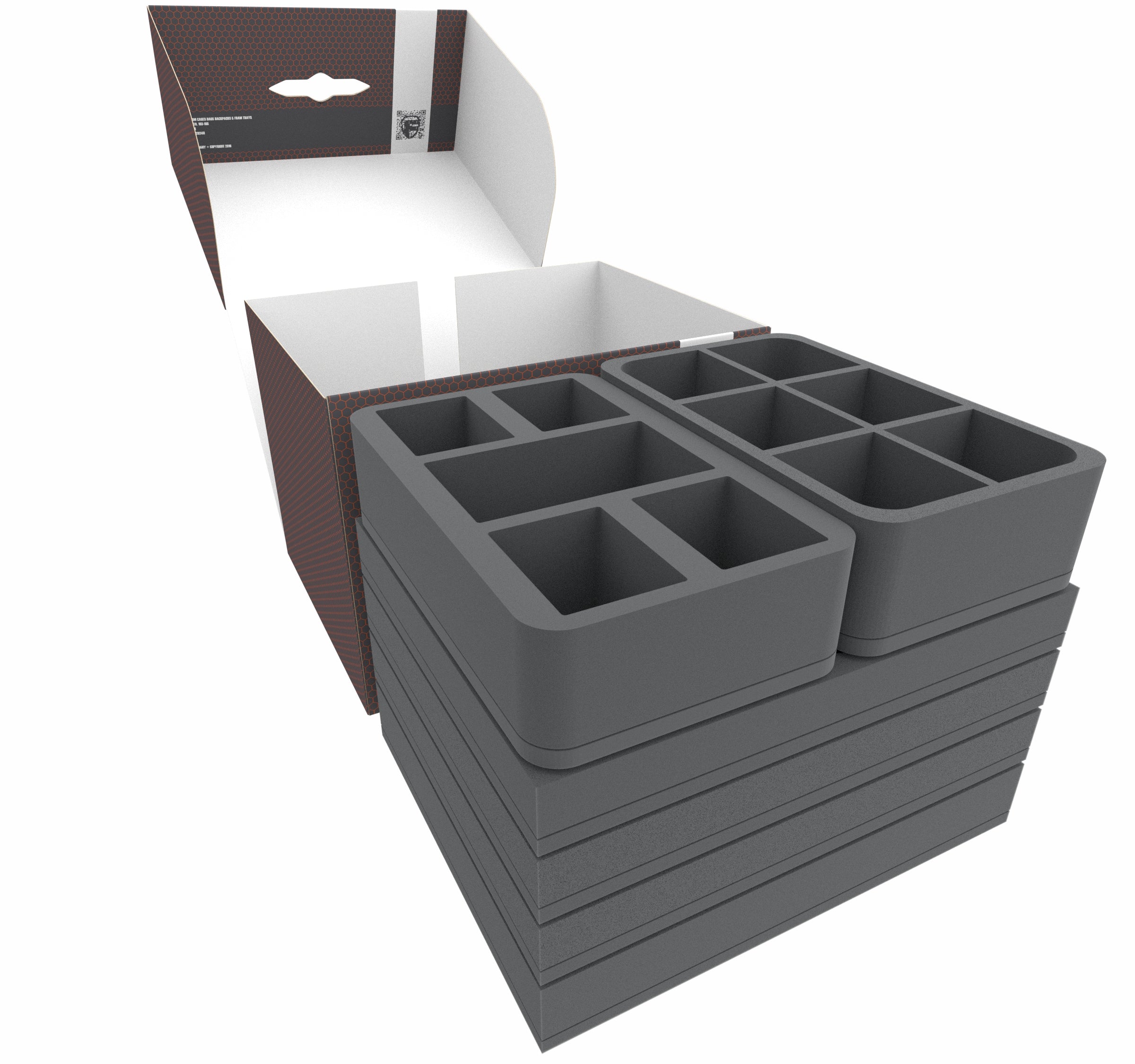 - 1 Half-Size foam insert with 6 compartments for medium-sized to large miniatures (HSMECO075BO)