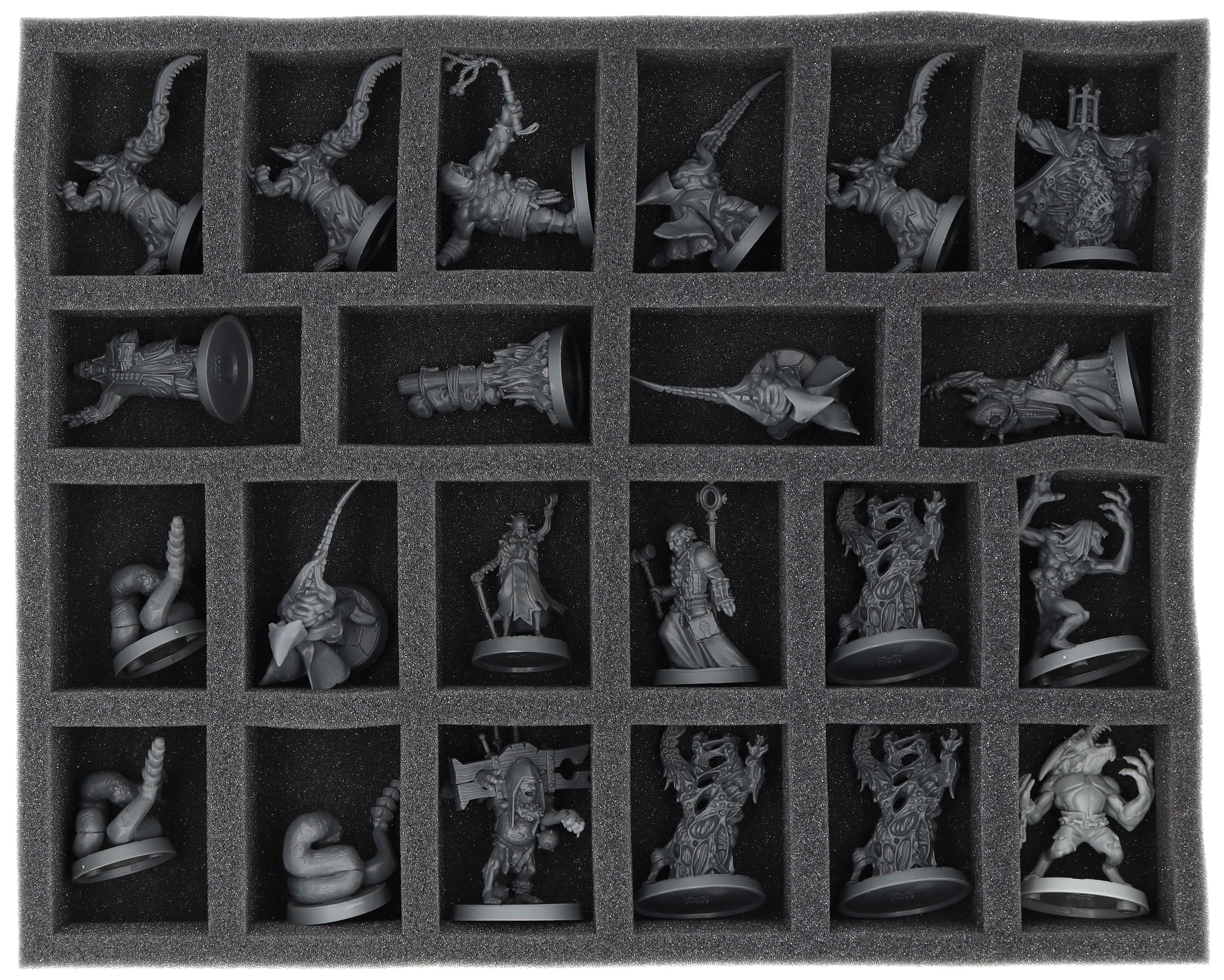 - 1 Full-Size foam insert with 22 compartments for small to medium-sized miniatures (FSMEZZ050BO)