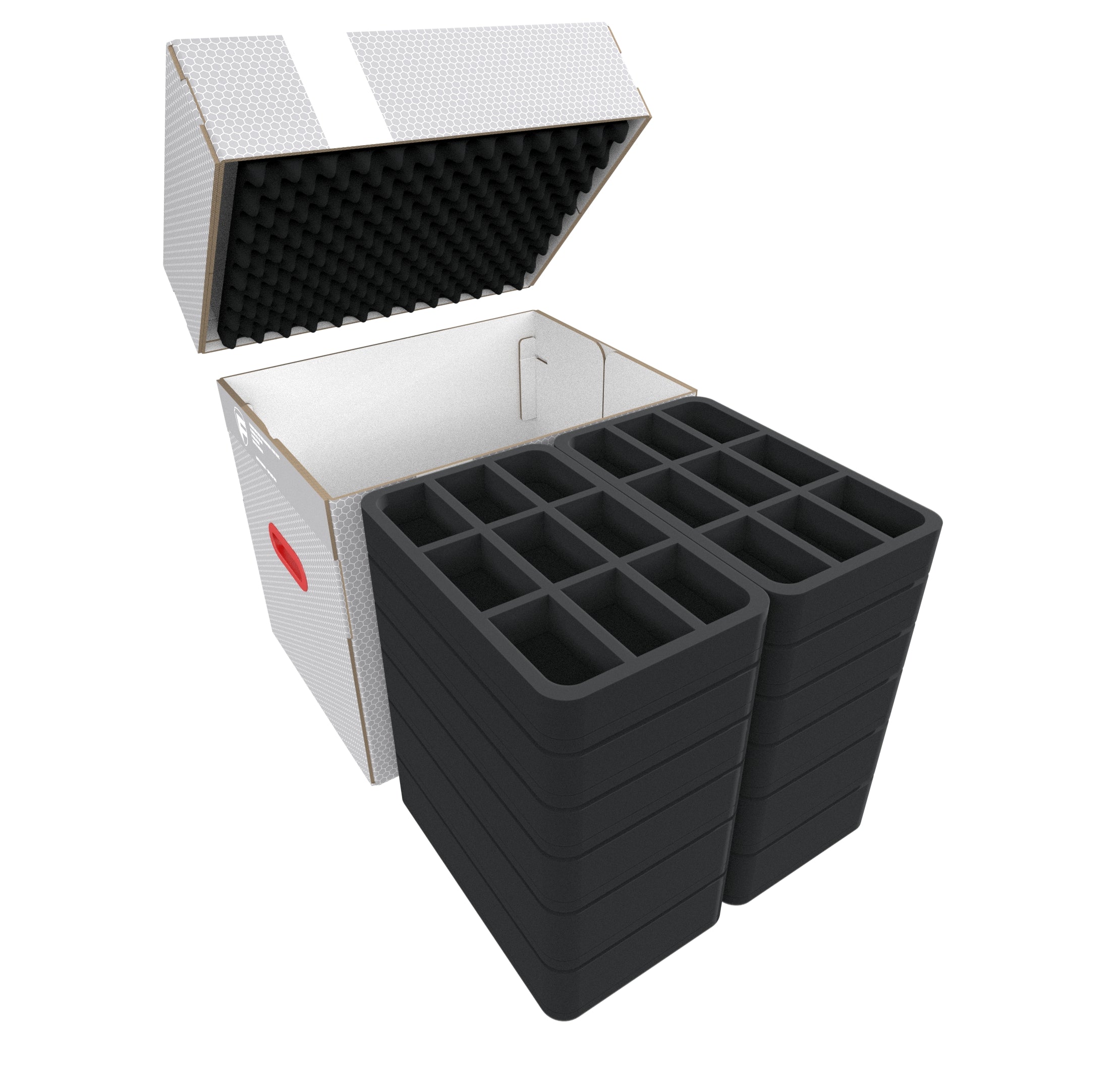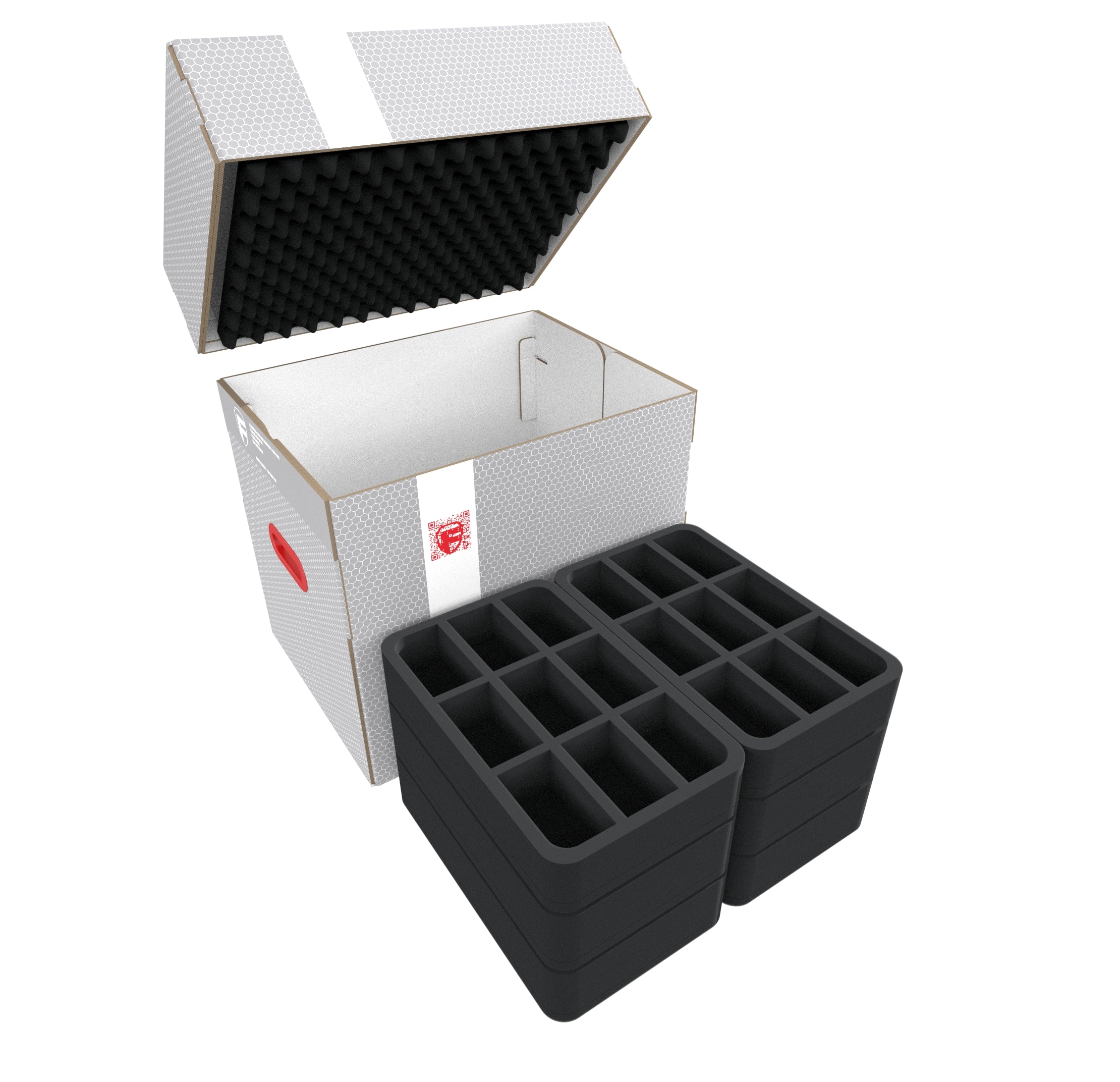 The set is completed by the matching convoluted foam. Just place it on the upper trays to ensure that no model can fall out.