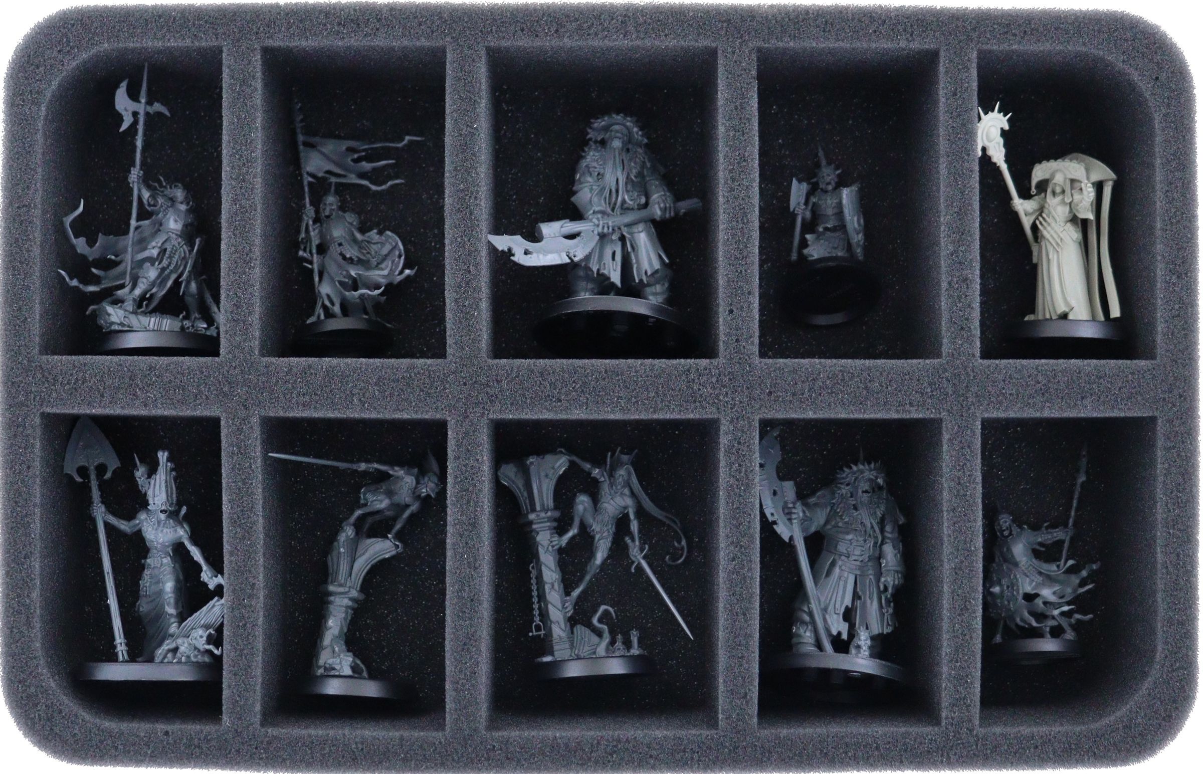 - 1 Half-Size foam tray with twelve compartments for large infantry like Vargheists + small infantry like Necromancer, Wight King + models of similar size (HSCW075BO)