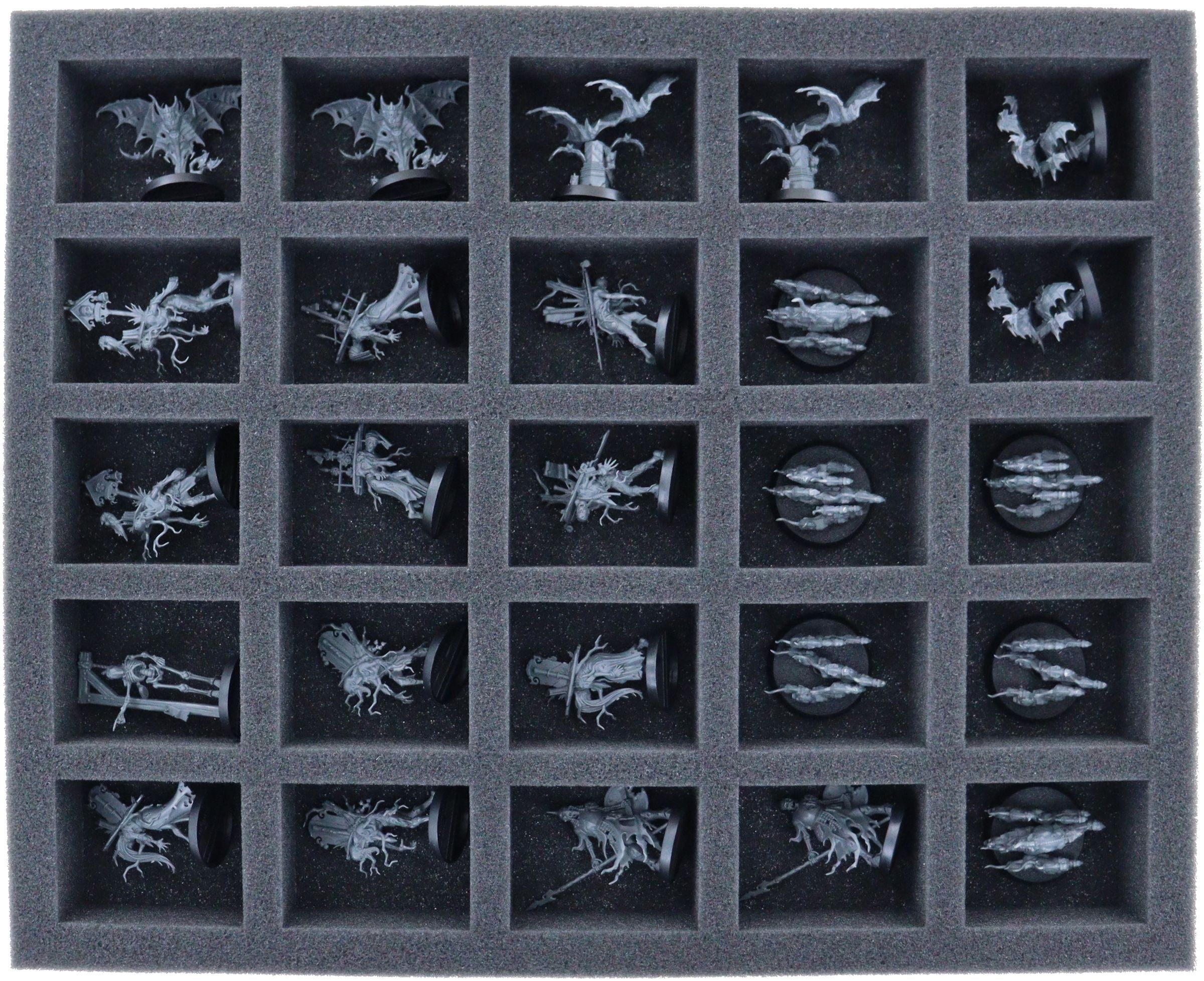 - 1 Full-Size foam tray with 25 compartments for standard infantry like Deadwalker Zombies and similar-sized models (FSLQ040BO)