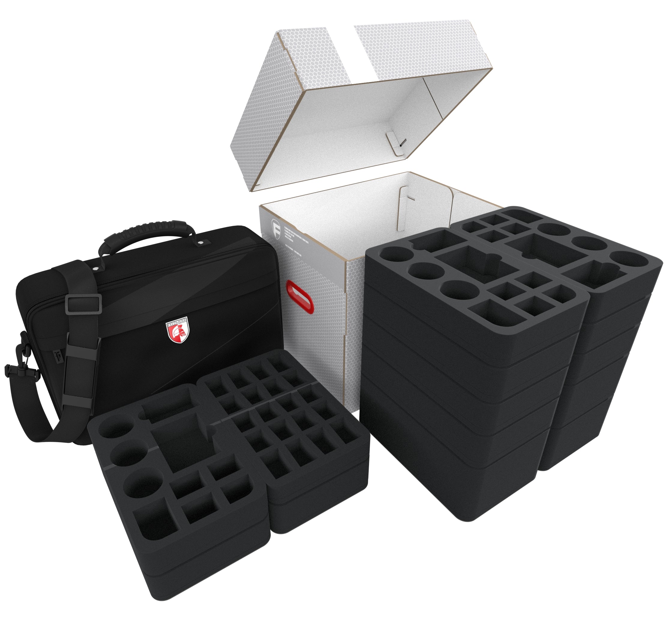 Die maßgeschneiderten Schaumstoffeinlagen, Taschen und Lagerboxen von Feldherr bieten praxiserprobten und zuverlässigen Schutz für deine Miniaturen, Sammelfiguren und andere wertvolle Gegenstände.