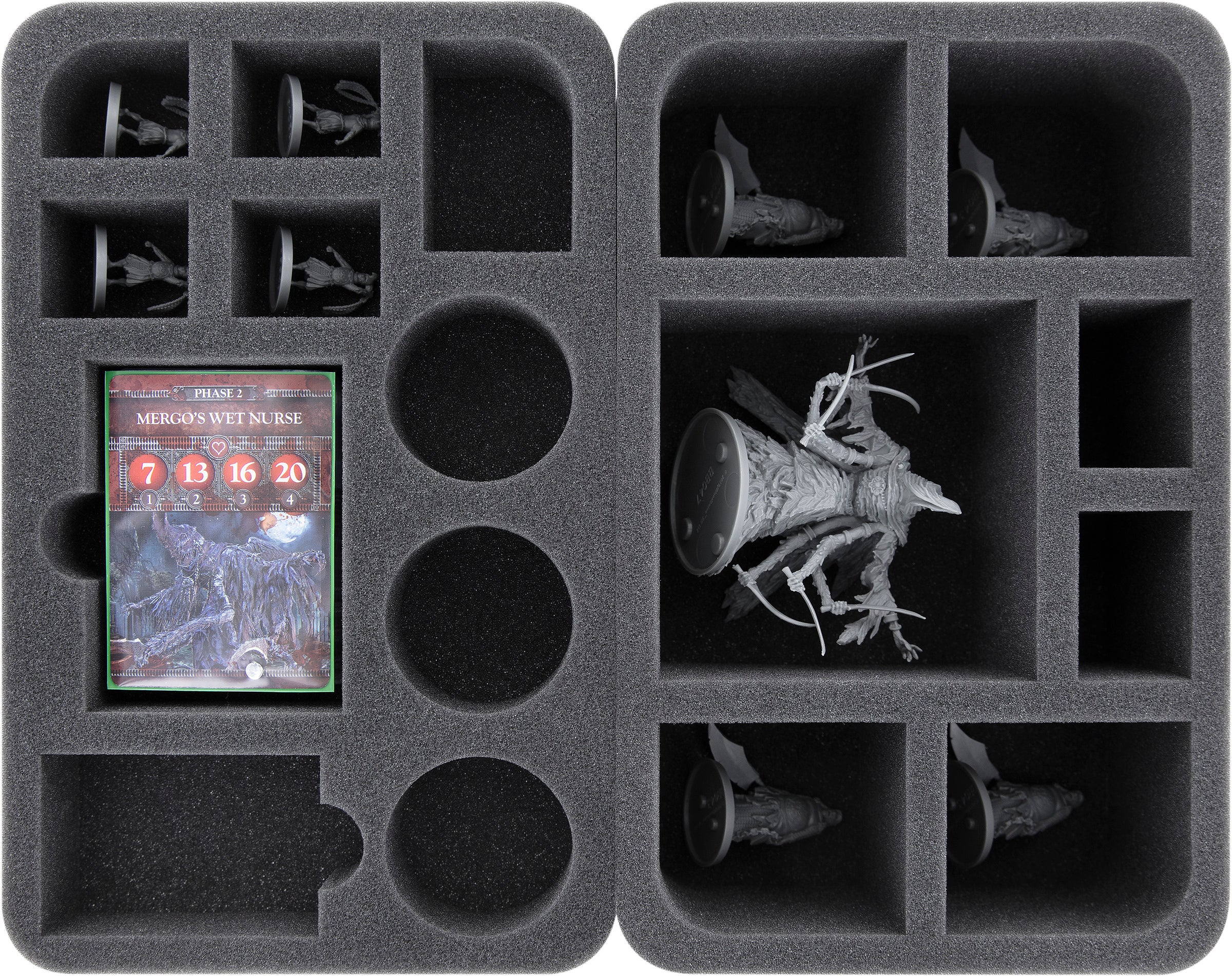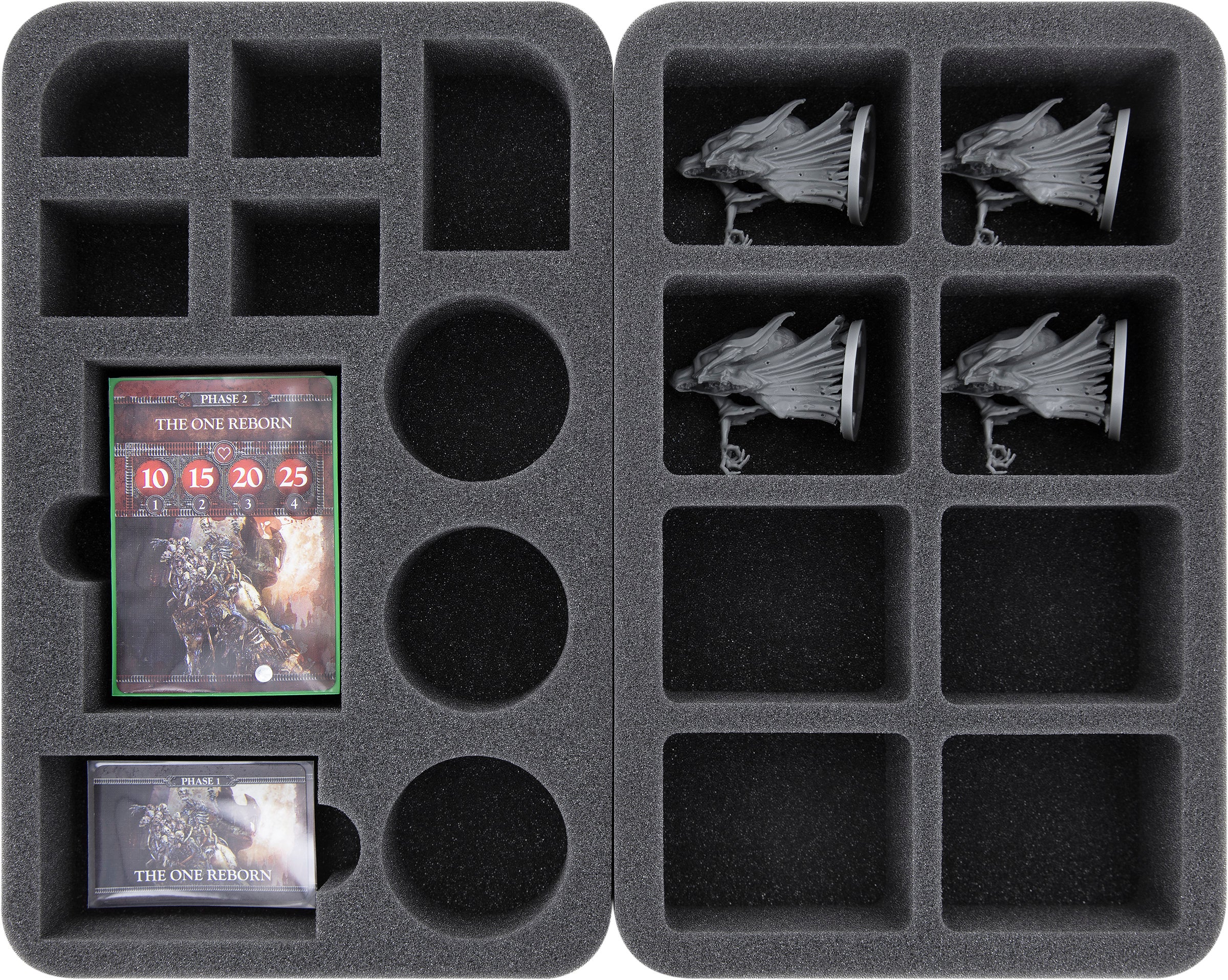 - 1 Half-Size foam tray for 8 miniatures and cards (HSFW045BO)