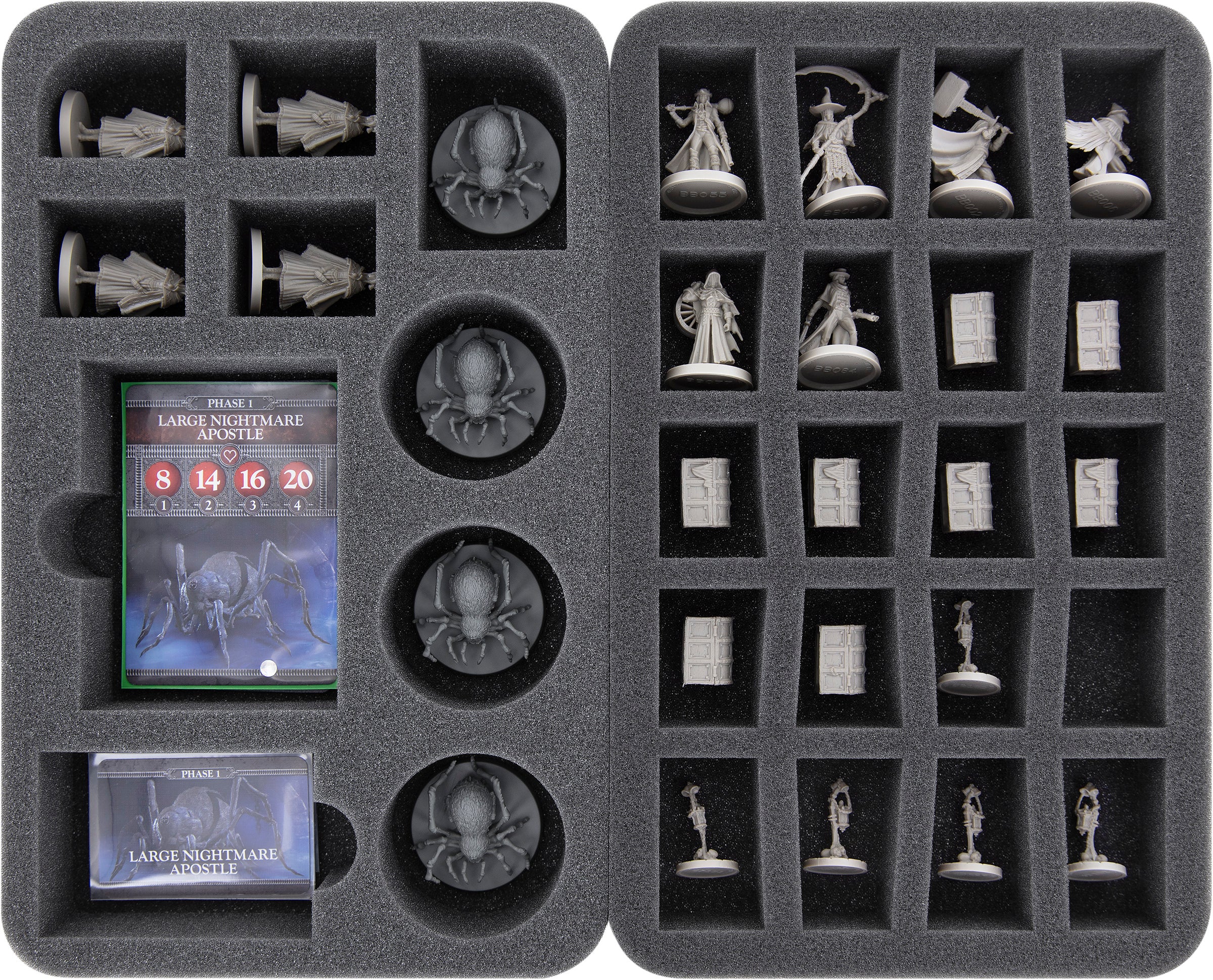 - 1 Half-Size foam tray for 1 Large Nightmare Apostle + 4 additional miniatures (HSMEJK050BO)