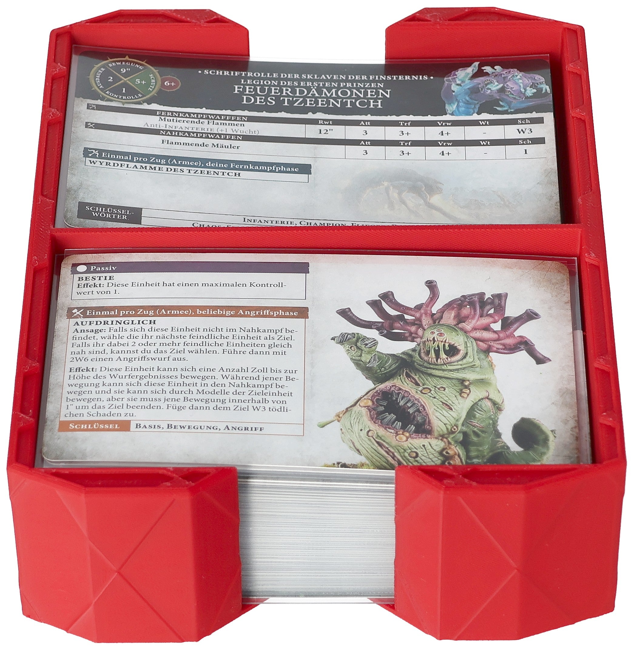 - Specially designed for AoS Warscroll Cards in 70 x 121 mm format, one card holder holds up to 300 cards without sleeves or 150 cards with sleeves. In total you have space for 600 cards (300 sleeved).