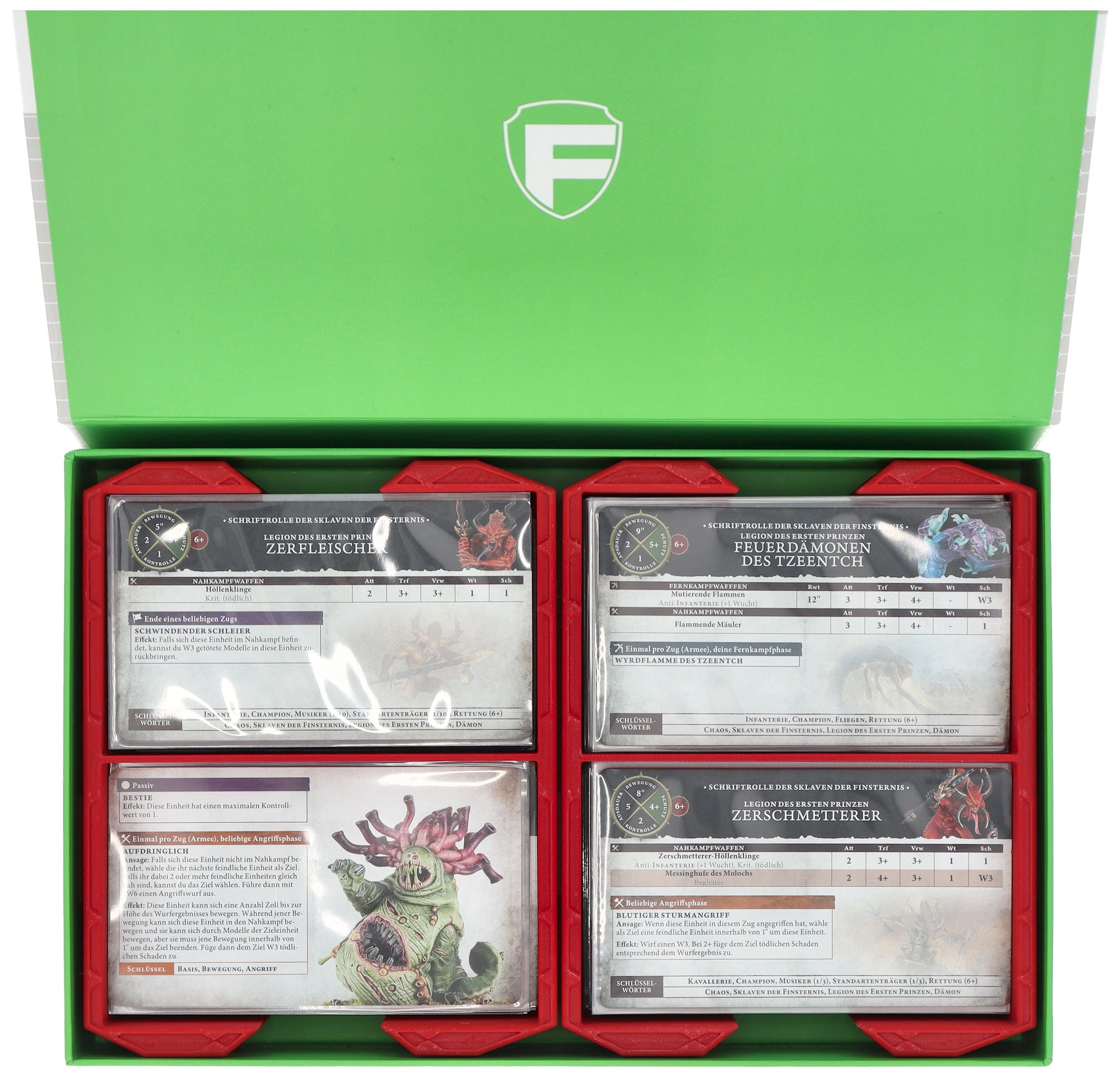 - The green Magnetic Box with 2 card holder inserts offers enough space even for larger Warhammer Age of Sigmar Warscroll Cards collections of various factions.