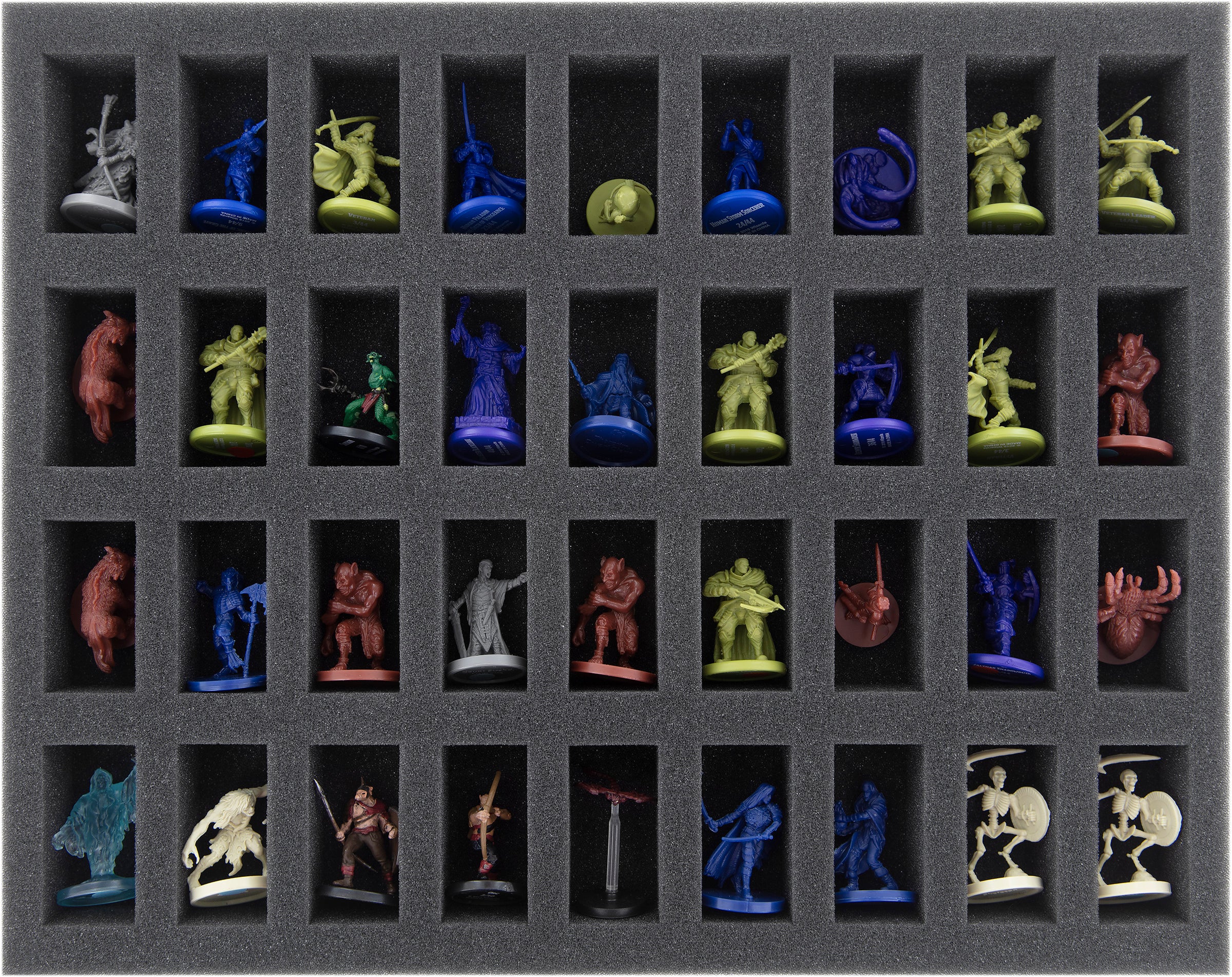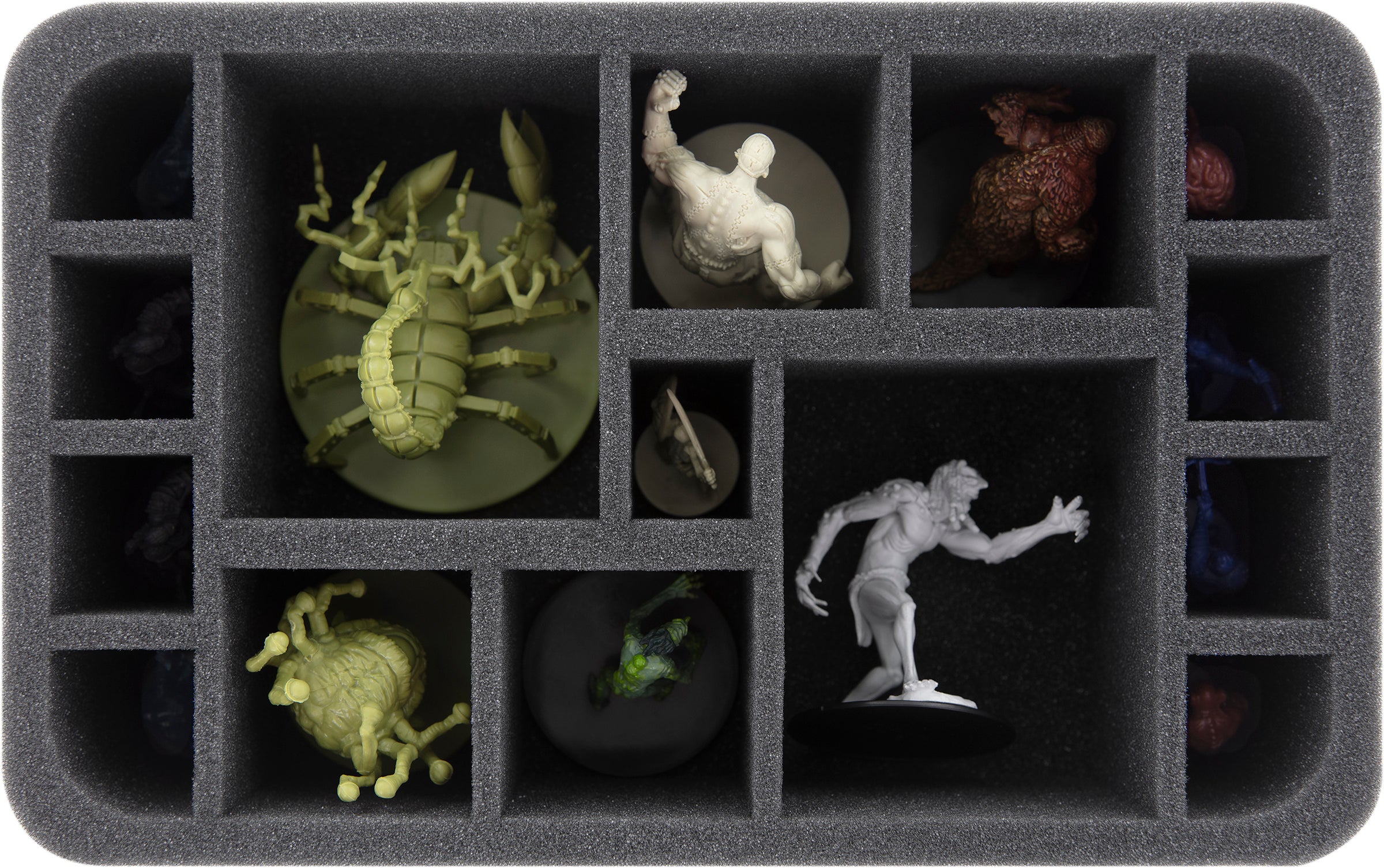 From goblin to giant, from small to huge - on a total of five Feldherr foam inserts you have enough space for your collection. Up to 92 miniatures find a new home here.
