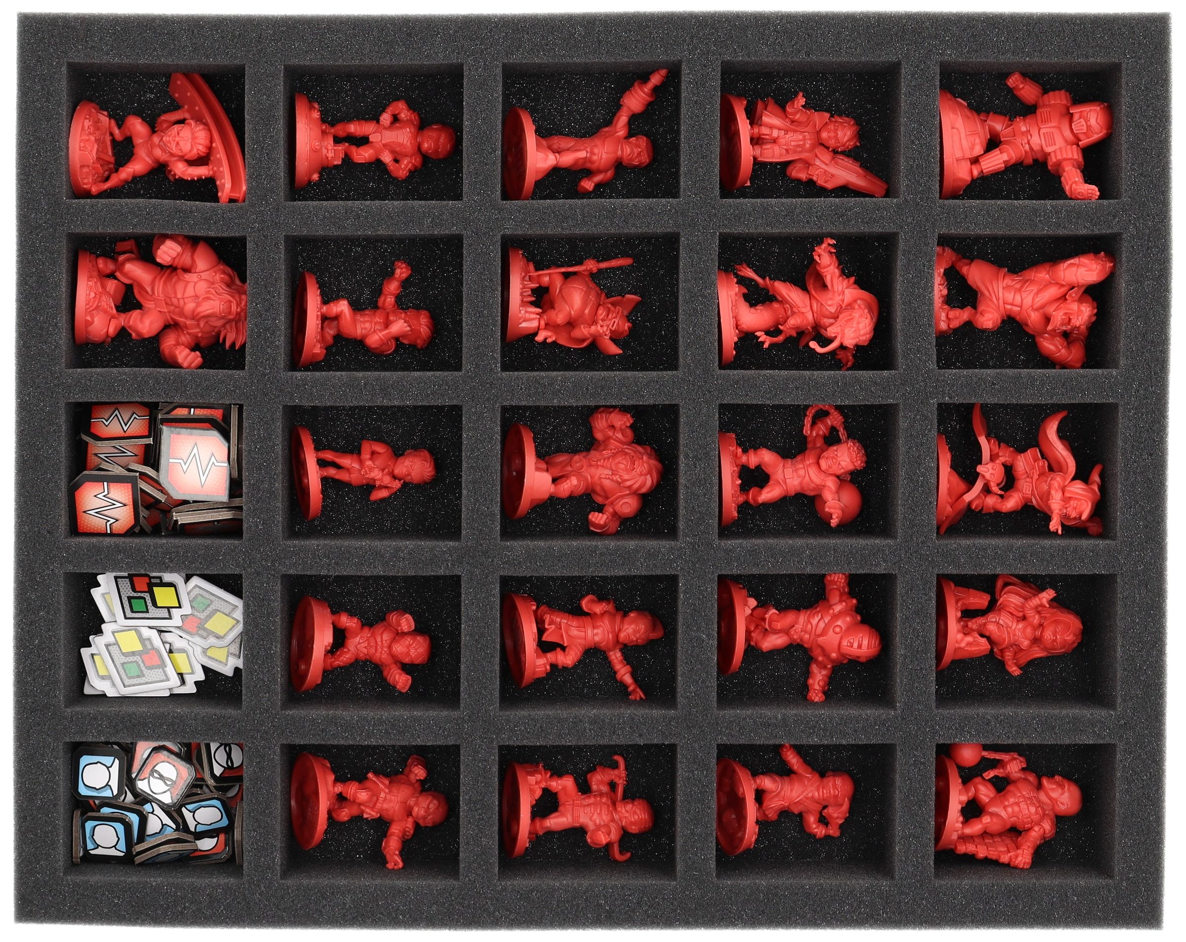 From Kid Loki and the Hobgoblin to Stature - every hero and every villain has their own compartment here. The majority of the miniatures can be accommodated on the three Full-Size foam inserts. For larger models there are suitable compartments on the two Half-Size inserts.