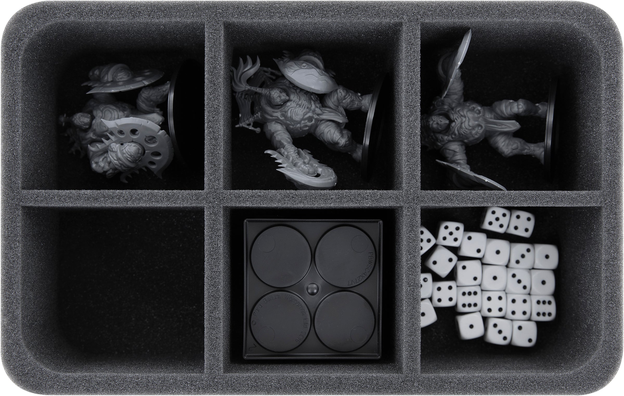 - 1 Half-Size foam tray with 10 compartments for protruding miniatures (HSBE040BO)