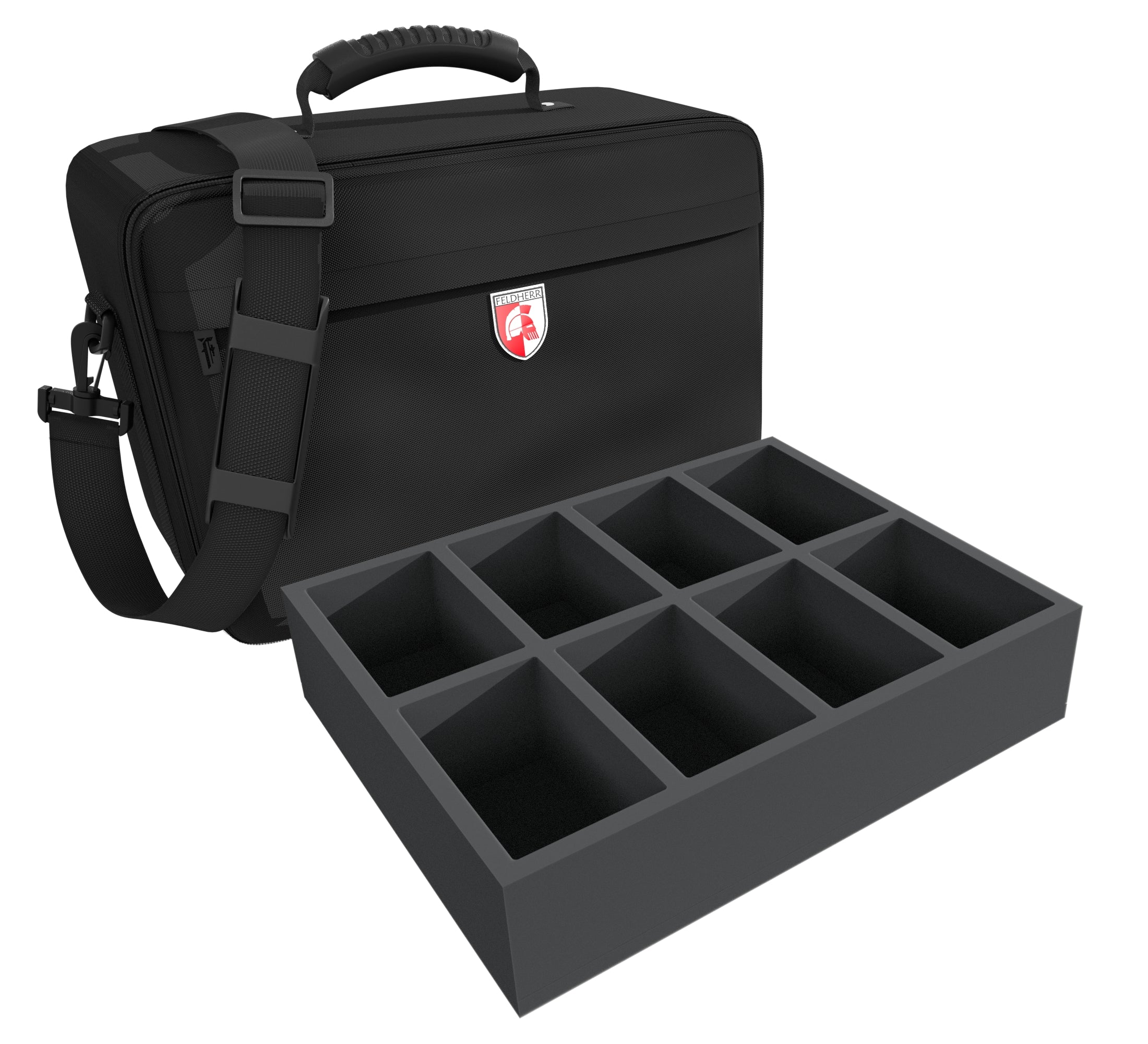 In order to succeed in the realm of Terrinoth, your miniatures should enter the battlefield in the best possible shape. The Feldherr MAXI bag with the matching foam enables you to sensibly sort and safely transport your miniatures to the next game night.