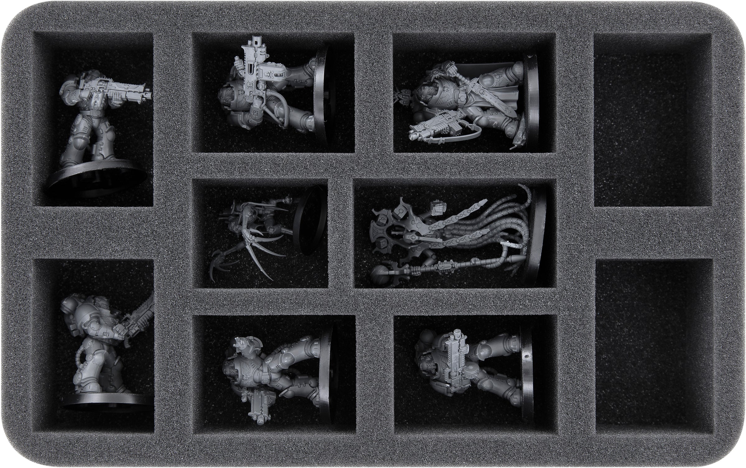 - 1 Half-Size foam tray for 1 Space Marine Captain and 5 Heavy Intercessors + Chronomancer and 1 Flayed One (HSLM050BO)