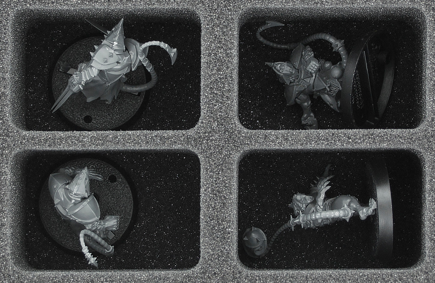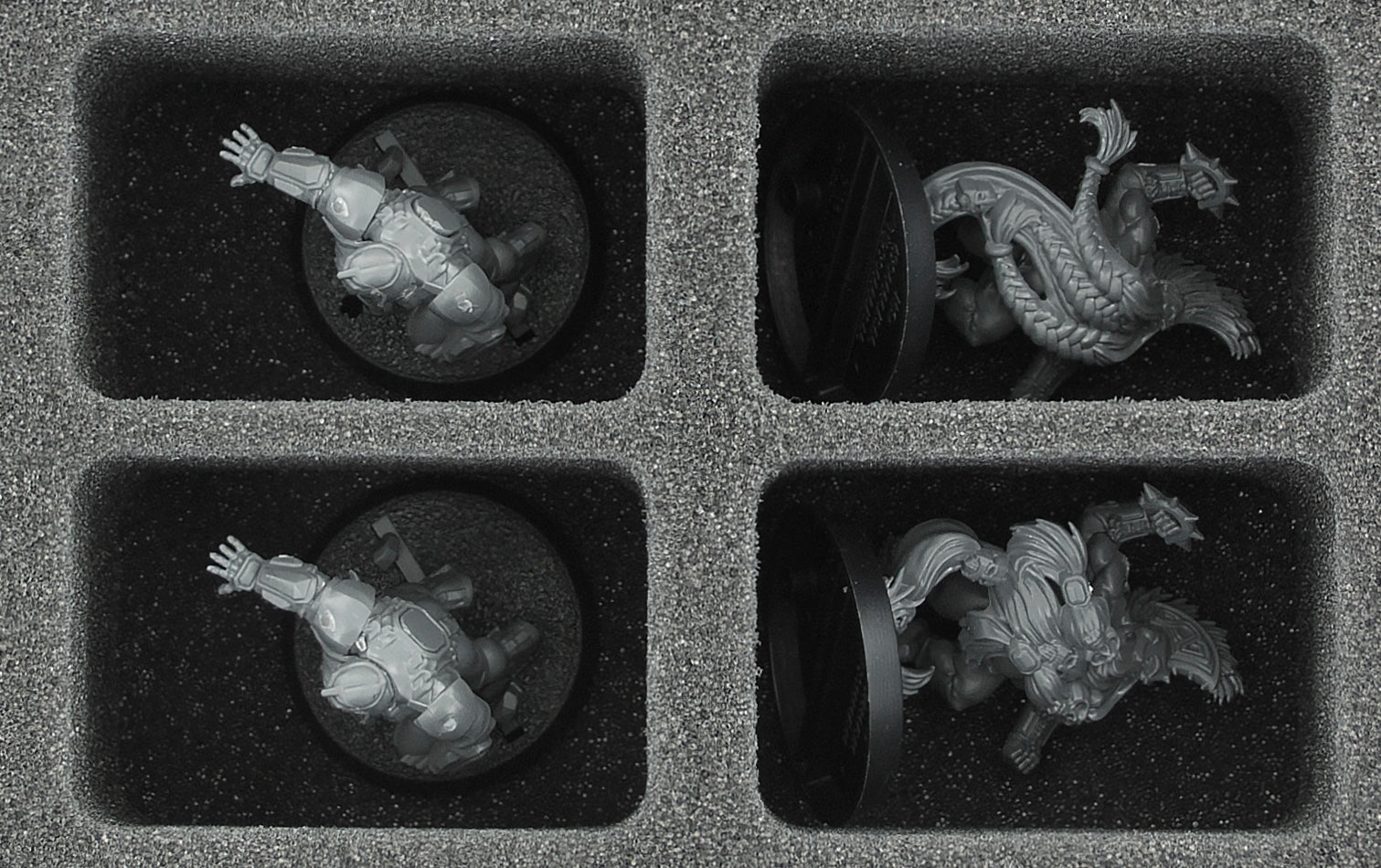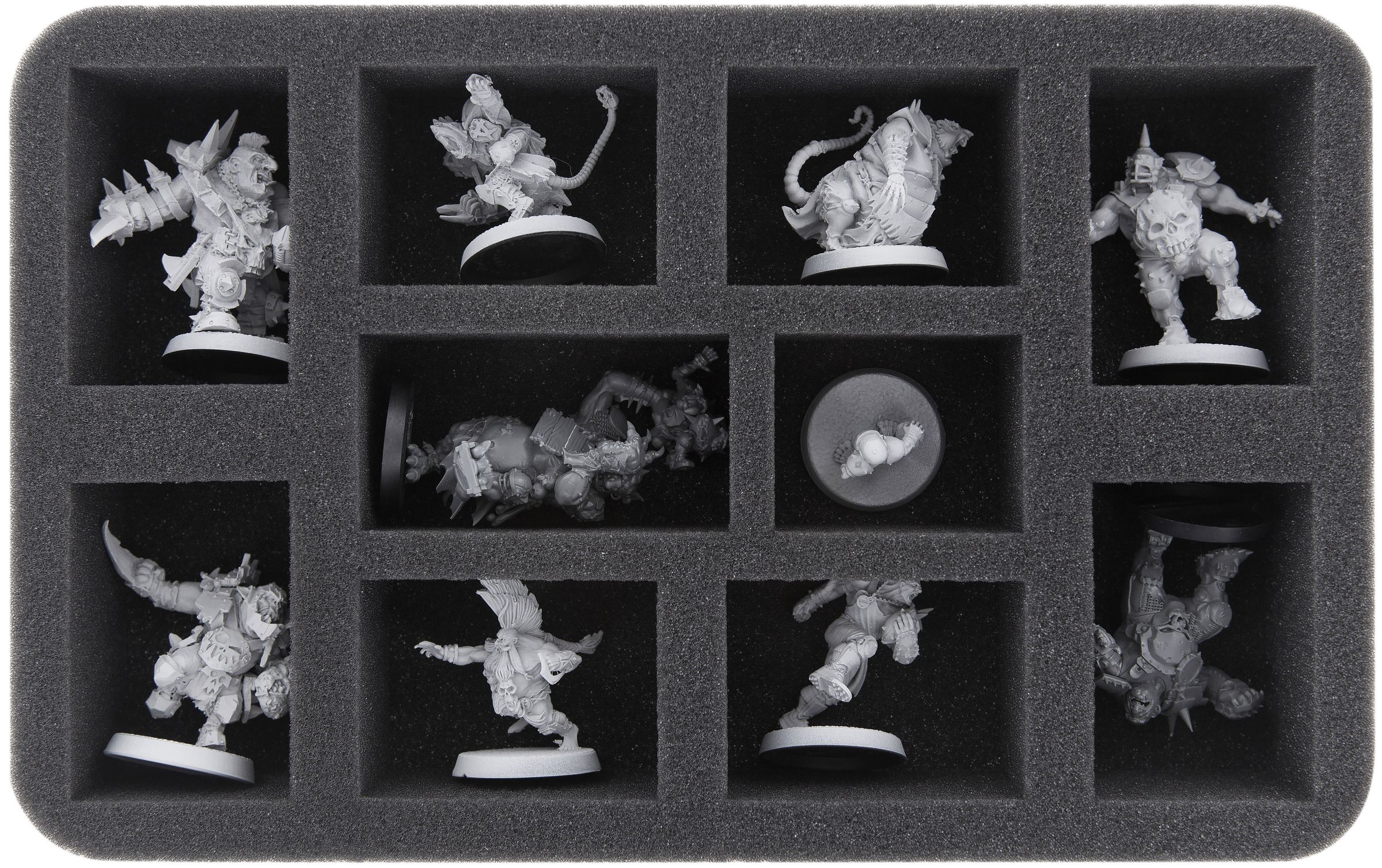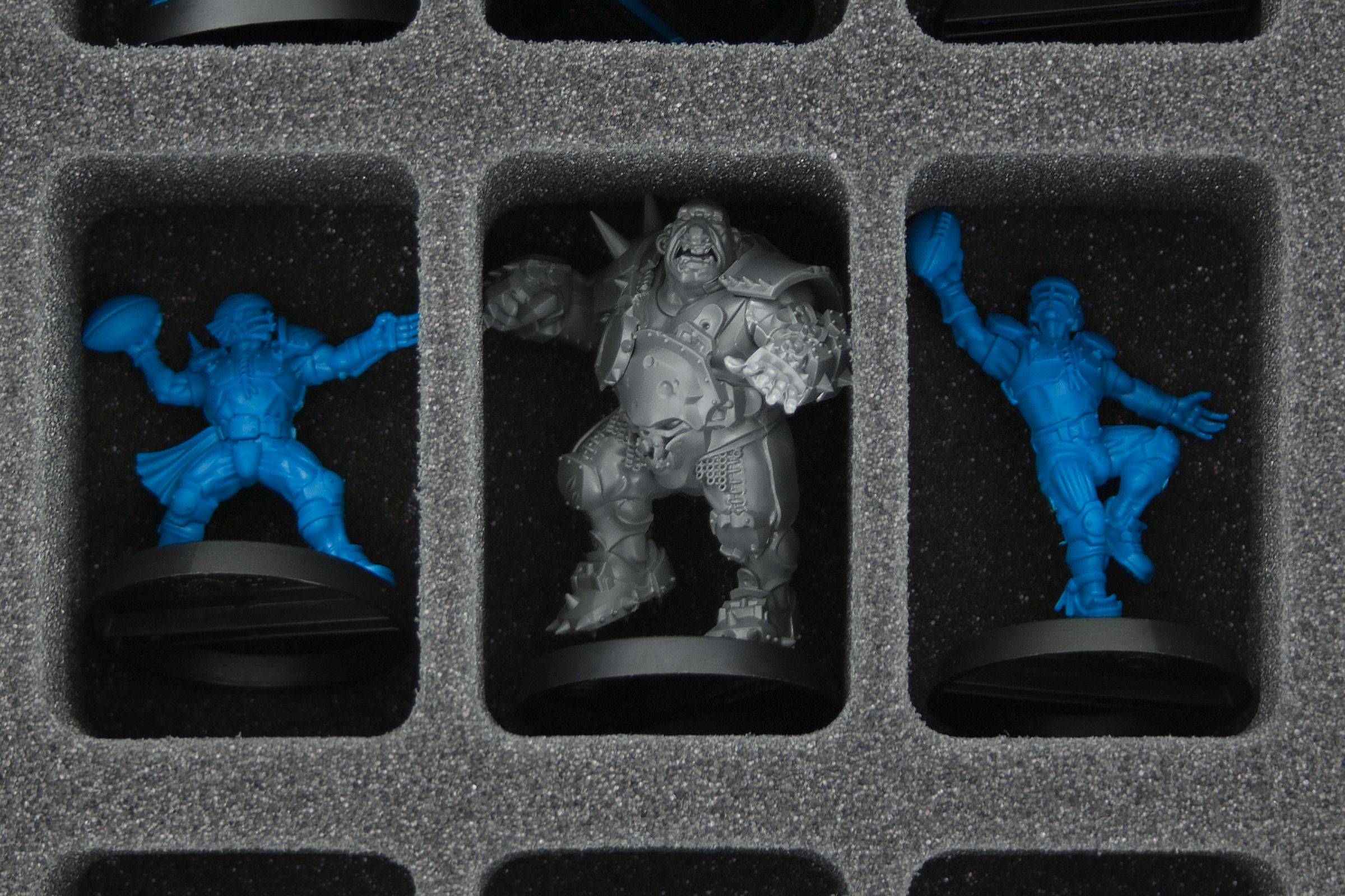 - Provides Order. 1 Full-Size foam tray with 32 compartments, 2 Half-Size foam trays with 10 and 12 compartments respectively. Up to 54 miniatures are thus clearly organized and always within reach. The Half-Size foam tray with 10 compartments is especially suitable to hold larger figures like Star Players. Of course, the trays can also accomodate other game material like extra balls, team counters or dice.