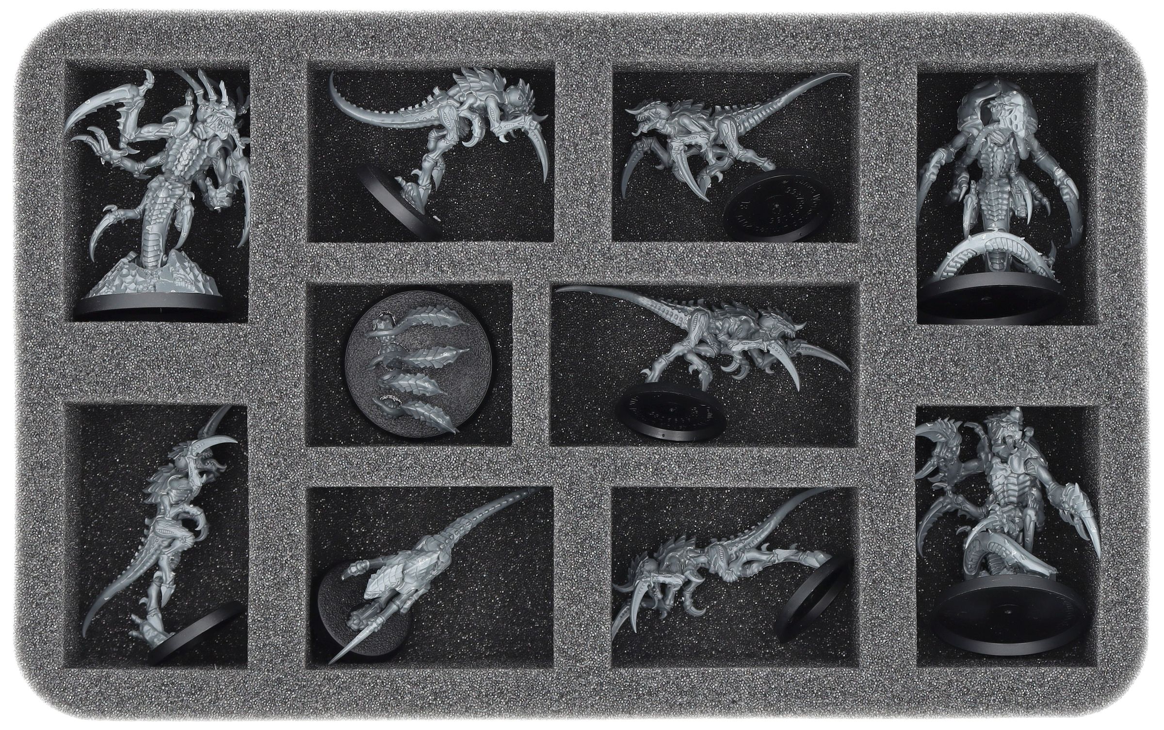 This Feldherr MEDIUM Bag including custom-fit foam inserts keeps your Battleclade, Raveners and Hormagaunts from the Kill Team: Typhon Starter Set safely stored and perfectly organized. To give your collection room to grow, the set also includes additional compartments for future units.