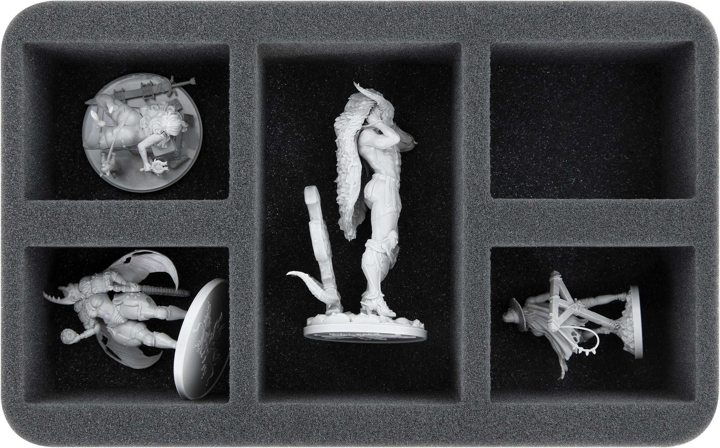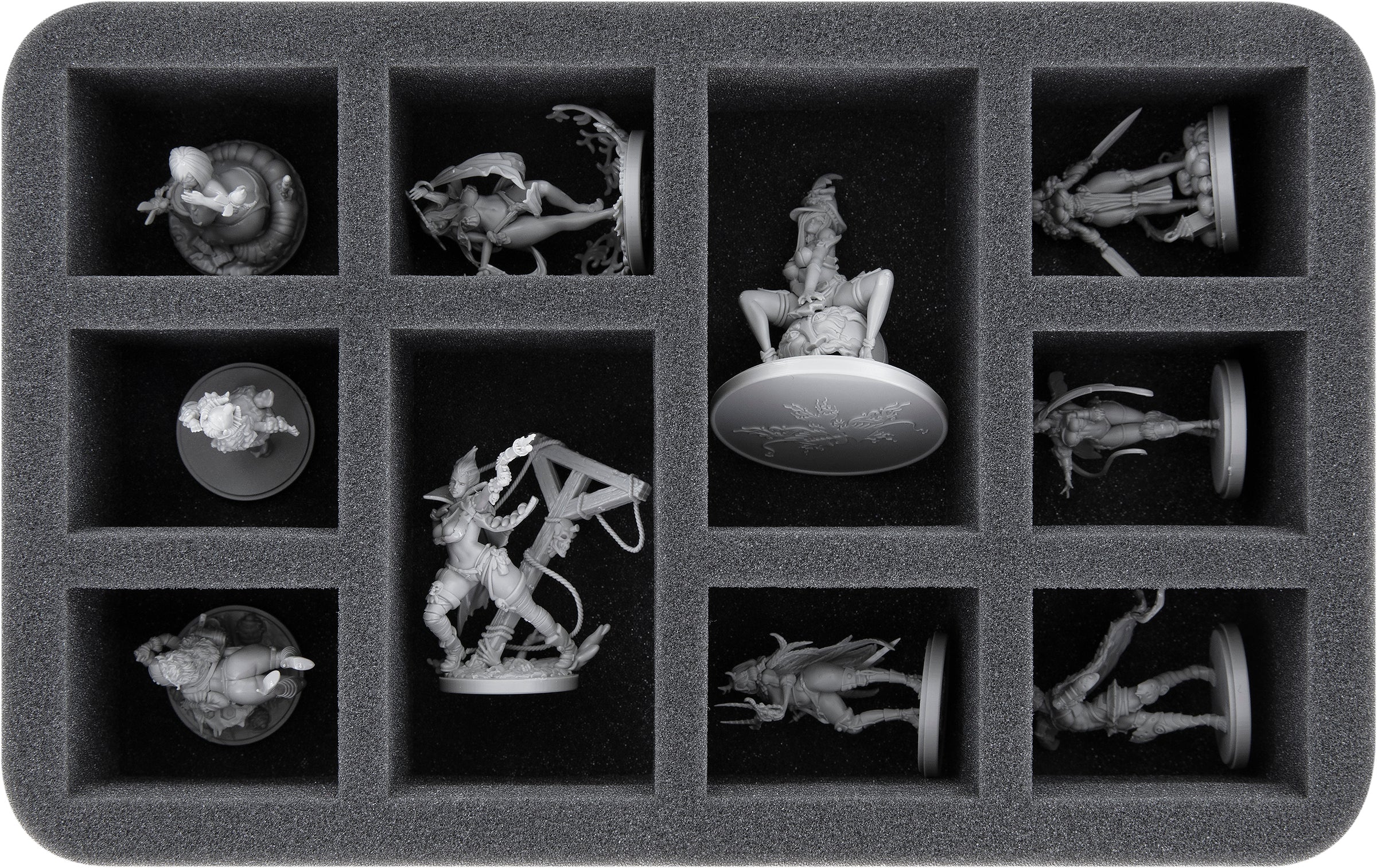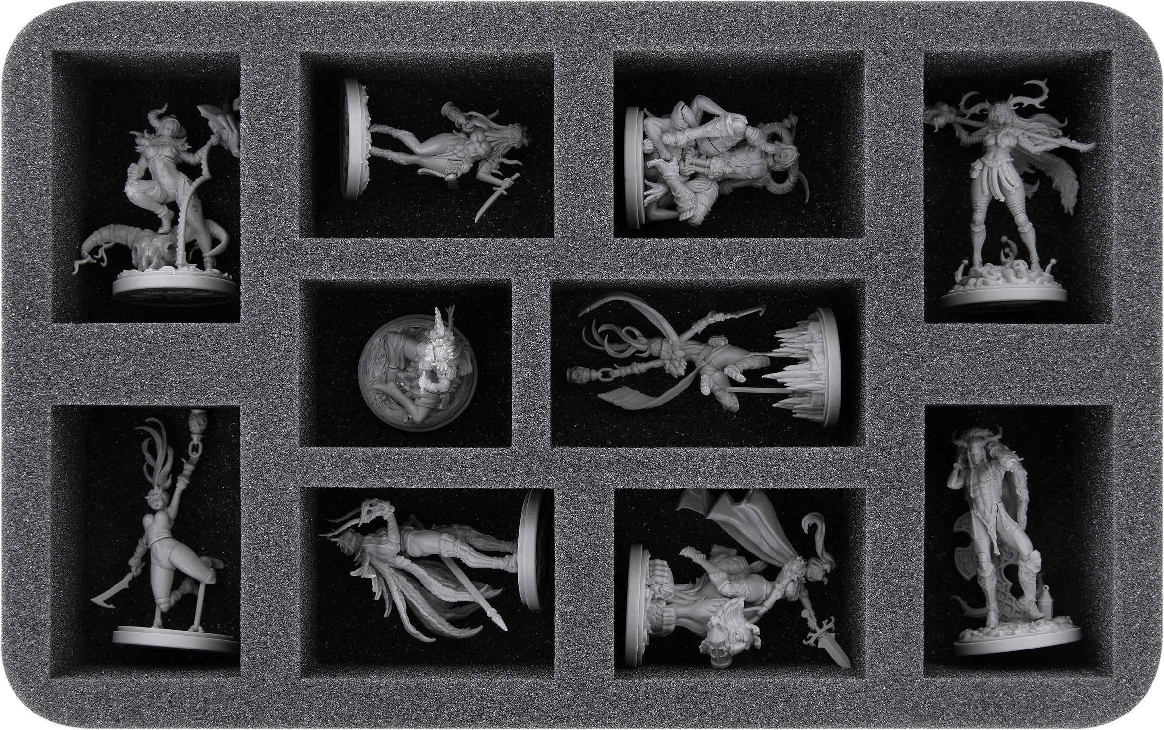 Thanks to the custom-fit cut, the miniatures have a tight fit. Even if the transport gets a little bit rough, the figures stay in place. The soft, fine-pored foam protects delicate details from breaking off and the colors of your painted models from scratches and paint abrasion.