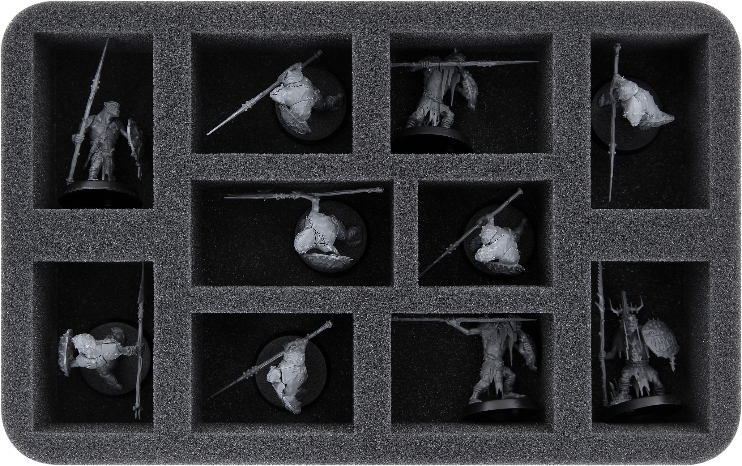 - 1 Half-Size foam tray with 10 compartments for e.g. Dryads (HSLM050BO)