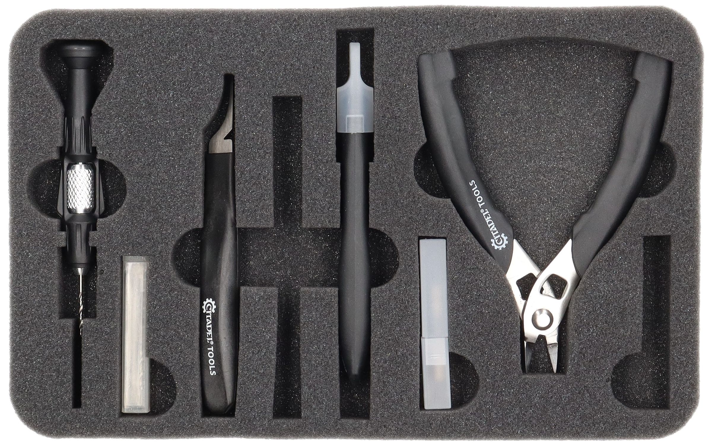 Two further foam trays provide space for your Citadel tools. There are custom compartments for the following tools:
