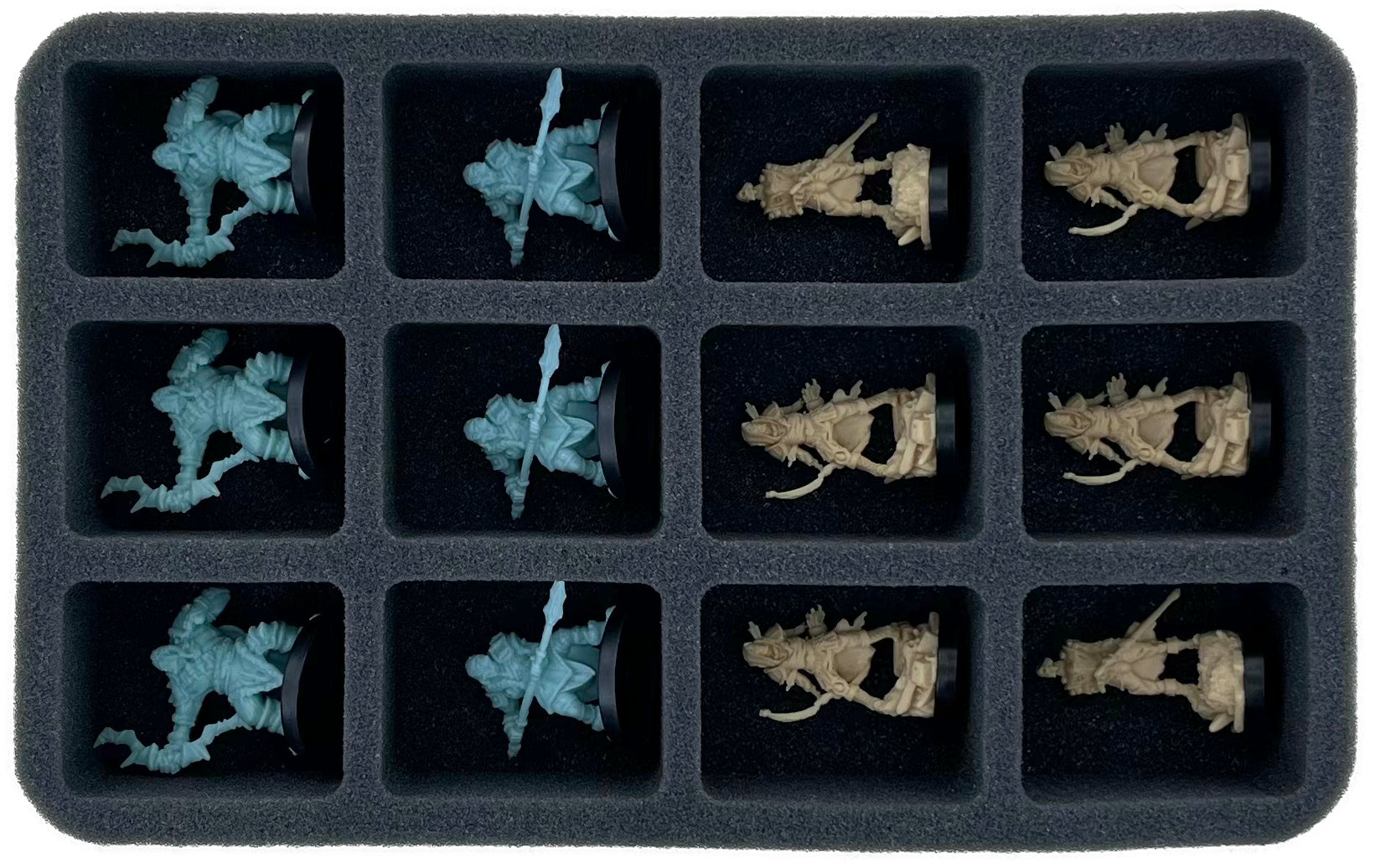 - 1 Half-Size foam tray with 12 compartments for infantry models like Grimfang Orc, Skeleton Archer and Orc King (HSMFEN050BO)